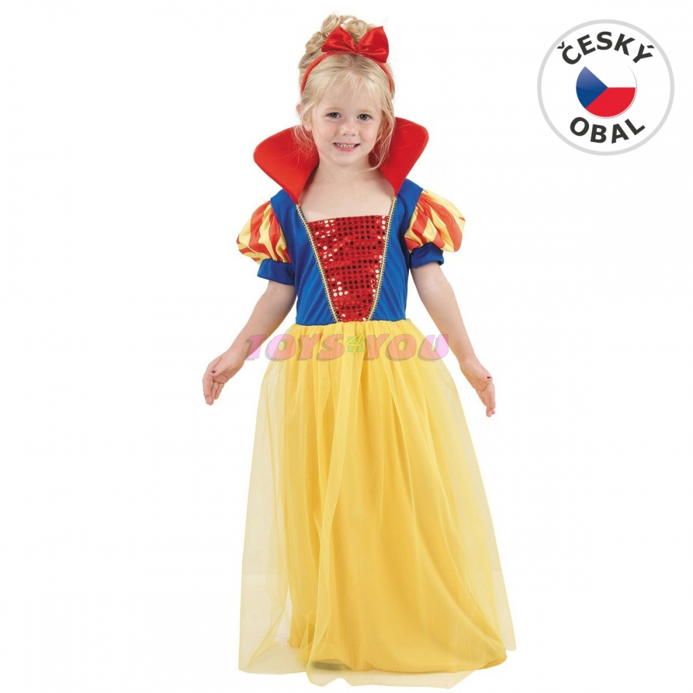 Chystáte se s dítětem na karneval, dětskou párty nebo na významnou kostýmovou událost ve škole či školce? Potom je na místě důkladný výběr vhodného kostýmu. Zkuste se zamyslet, jaký konkrétní převlek vystihne dětskou osobnost, významnou vlastnost, jaký kostým vašemu dítěti bude nejvíce slušet. Bude to kostým komiksového hrdiny, pohádkový kostým, převlek znázorňující nějaké povolání anebo krásné šaty pro princeznu? Při výběru kostýmů a tvorbě případných doplňku zažijete s dítětem spoustu zábavy. Odměnou vám i vašemu dítěti bude radost a spousta zážitků. Staňte se společně hvězdou karnevalu. Karnevalový kostým - Sněhurka Velikost: Pro malé děti (92 - 104 cm). Kostým je vhodný pro děti ve věku 3-4 roky. Obsahuje: - šaty s límcem - čelenku. Neobsahuje: - boty.