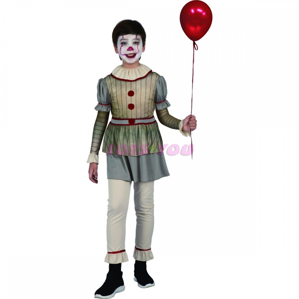 Kostým na karneval pro kluky - strašidelný klaun . Kostým obsahuje: blůzu, kalhoty, nákrčník. Velikost: 120 - 130 cm. Věk: 5-9 let