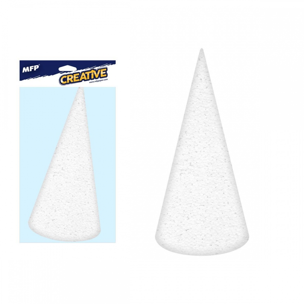 Kužel polystyrenový - hladký - určený pro vlastní tvorbu dekorací - vhodný jako základ na výrobu andílků, zvířátek, postaviček. Průměr: 11cm. Výška: 30cm. Rozměr: 110mm x 300mm x 110mm (Š x V x H)