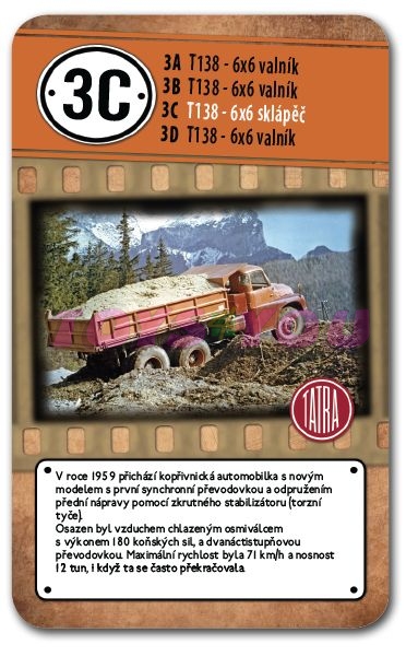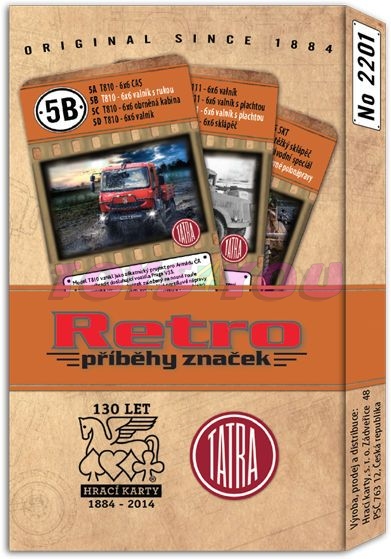 Kvarteto 2201 Retro Tatra - …edice her Retro – příběhy značek přináší ve zcela originální grafice kvarteto s fotografiemi slavných tatrovek. Hra vznikla ve spolupráci se společností TATRA TRUCKS a.s. No.2201, revers retro, krabička papír počet 32 listů formát karet 61/99 mm papír Casino Classic 310 g/m2 baleno v papírové krabičce s herními pravidly EAN 859 55917 0054-2