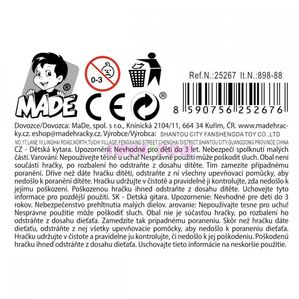 Kytara Hračka je určena pro děti 3+. Rozměr hračky je 57,5 x 21,5 x 7,3. Materiál hračky je plast. Balení hračky je open box. Produkt je určený pro kohokoliv. Baterie nejsou součástí balení. Věk: 3+