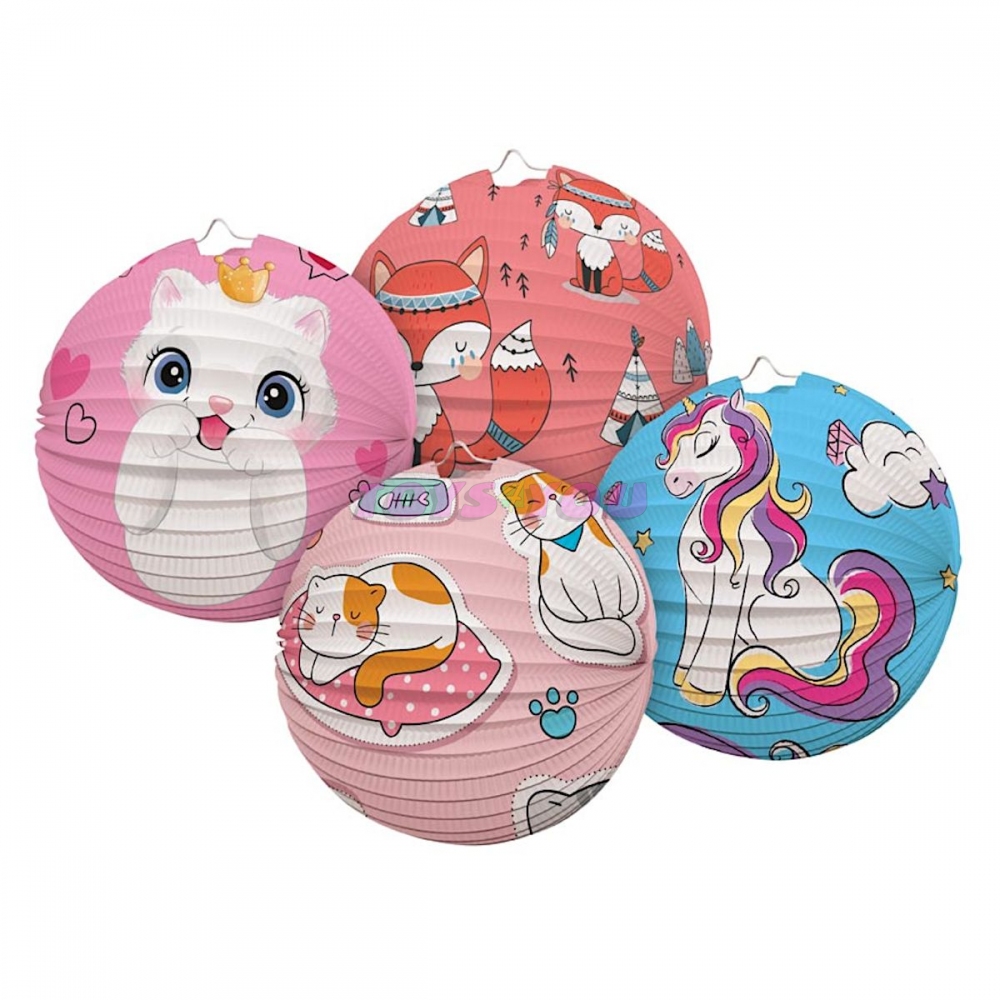 Papírový kulatý lampion barevný s obrázky. Vhodná dekorace na party, lampionový průvod, zahradní slavnost, karneval, oslavu narozenin nebo jen tak na zavěšení do dětského pokojíčku. Vyberte si svůj lampion a udělejte z běžného večera kouzelný. Lampion je z nehořlavého papír a má držák na svíčku nebo žárovku. Lampion je bez hůlky a světýlka. Lampion má poutko na zavěšení. Materiál: papír, kov Průměr lampionu: 25 cm Motivy: kotě, kočky, jednorožec, liška Dodáváme v mixu po 4 ks dle skladové zásoby. Uvedená cena je za 1 ks. Hmotnost: 0.06 kg Varování: Není hračka! Používejte pod dohledem dospělé osoby. Rozměr: 250mm x 250mm x 250mm (Š x V x H) Uvedená cena je za 1 ks.