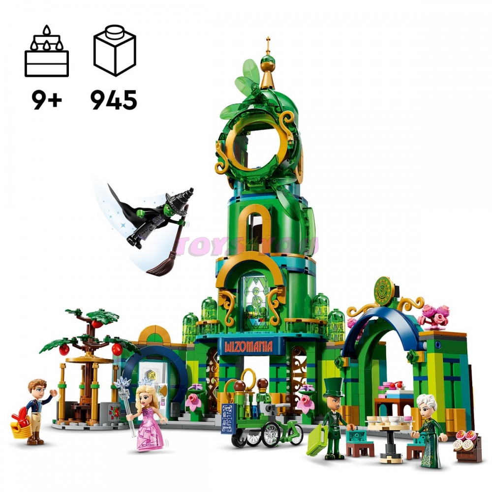 Rozměry – Model Vítejte v Emerald City se skládá z 945 dílků a měří přes 39 cm na výšku, 37 cm na šířku a 13 cm do hloubky. Věk: 9+