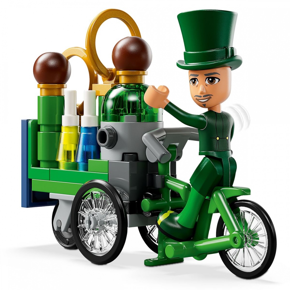 Součástí této fantastické hračky je 5 minipanenek, se kterými si děti připomenou scény o přátelství z filmu Wicked (Čarodějka). Minipanenky Fiyera, Glindy a Elphaby si projdou obchod s kosmetikou, užijí si zábavu při nakupování dortů nebo si vychutnají kávu od prodejce se stánkem na kole. Další herní inspiraci děti získají naskenováním skrytého QR kódu, díky kterému získají přístup k jedinečnému online obsahu LEGO Wicked.