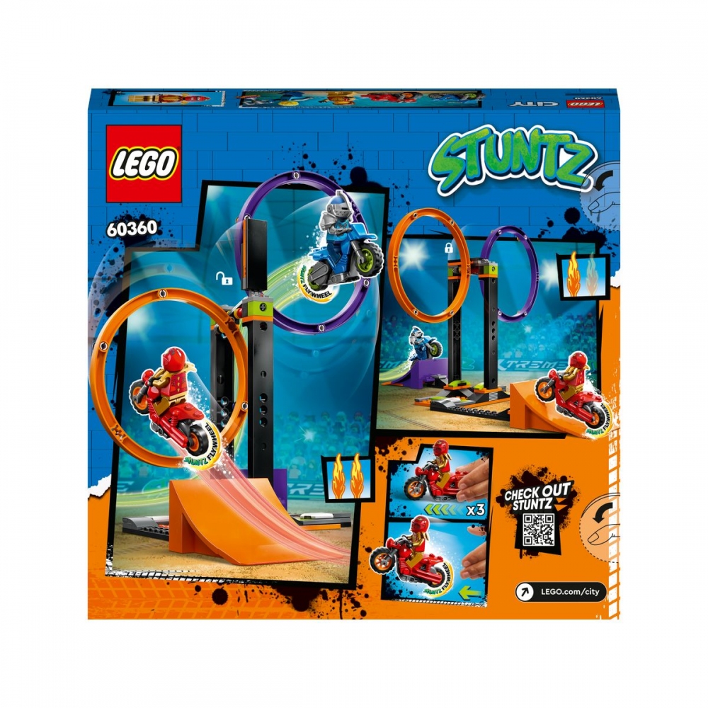 Děti si zamilují plánování vzrušujících představení, her a soutěží s touto stavebnicí Kaskadérská výzva s rotujícími kruhy od LEGO® City (60360). Najdete v ní otáčivý dvojitý kaskadérský kruh, 2 rampy a 2 kaskadérské motorky se setrvačníkem. Stačí přidat 2 LEGO® City Stuntz jezdce na motorkách a zábava může začít! Kaskadérská výzva s rotujícími kruhy v zamčené poloze měří 20 cm na výšku, 26 cm na šířku a 39 cm do hloubky. Počet kostek: 117. Věk: 6+