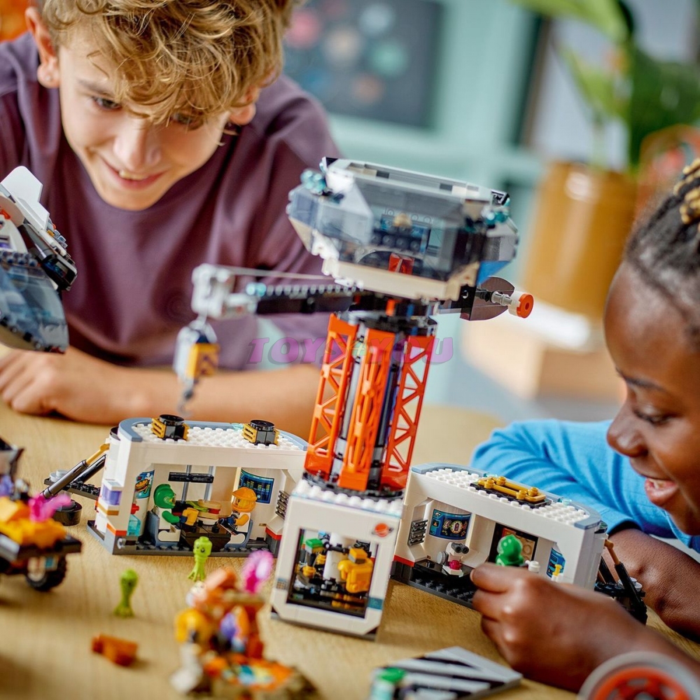 Vesmírná průzkumná stavebnice 60434 LEGO® City Vesmírná základna a startovací rampa pro raketu pro děti od 8 let je plná funkcí pro dobrodružství mimo tento svět. Odhalíte řídicí místnost a 360° vesmírný věžový jeřáb nad hlavním sektorem, který otevírá přístup ke karuselu s vybavením, vědeckou laboratoř a oblast pro občerstvení. Stavebnice obsahuje také vesmírnou loď, startovací rampu, konstrukční vozidlo a scenérii planety s herními energetickými krystaly a vegetací, dále 6 minifigurek vesmírné posádky a figurky 1 robota a 2 mimozemšťanů pro nápadité hraní rolí.