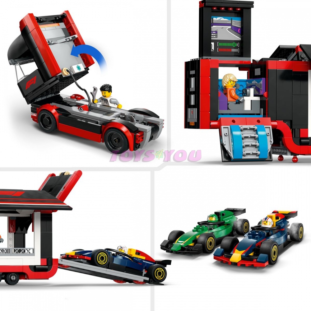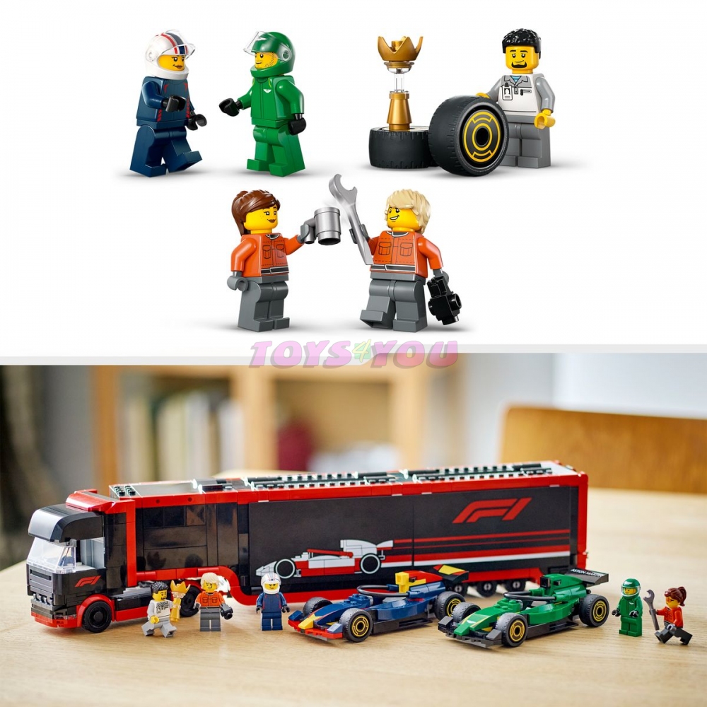 Stavebnice LEGO® F1® s přepravním kamionem – Malí fanoušci Formule 1 si zamilují tuto prémiovou stavebnici LEGO City Kamion F1® s vozy F1® RB20 a AMR24 pro děti od 8 let