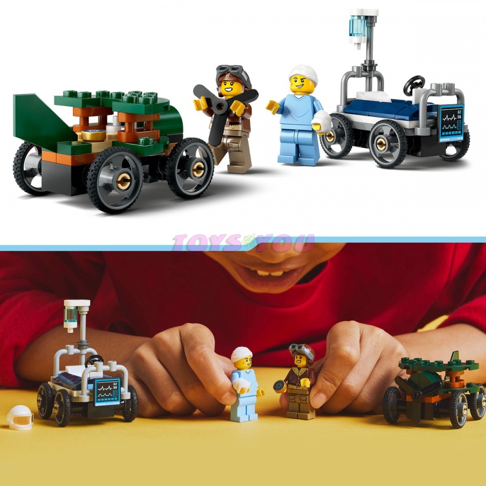 Potěšte malé milovníky závodů od 5 let stavebnicí LEGO® City (60459) Závodní balíček: Letadlo vs. nemocniční lůžko. Tato zábavná závodní stavebnice obsahuje 2 závodní minikáry a 2 minifigurky. Děti postaví pilota v letadle proti pacientovi na překvapivě rychlém nemocničním lůžku. Kdo vyhraje? Sedněte za volant a pusťte se do napínavých městských závodů!