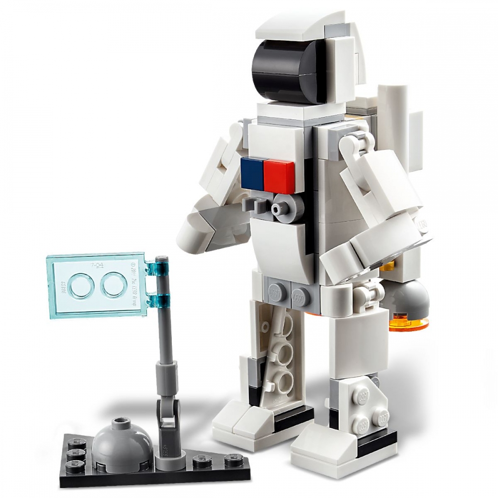 V této stavebnici 3 v 1 čekají na milovníky vesmíru 3 různá stavitelská a herní dobrodružství. Mohou si postavit raketoplán a pak jej přestavět na pohyblivou figurku astronauta s jetpackem a vlajkou nebo na úžasnou vesmírnou loď. Robustní model raketoplánu měří přes 6 cm na výšku, 12 cm na délku a 16 cm na šířku. Počet kostek: 144. Věk: 6+