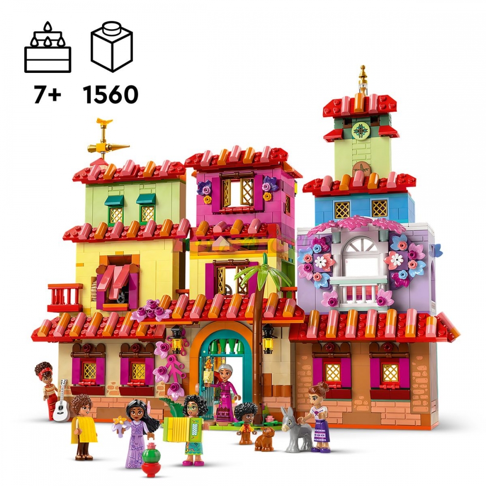 Tato stavebnice představuje zábavný dárek a součástí jsou minipanenky LEGO | Disney Mirabel, Abuely, Isabely, Dolores, Luisy a Camila, mikropanenka LEGO | Disney Antonia a 2 figurky zvířátek LEGO | Disney. Děti i dospělí si zamilují propracované detaily stavebnice. Domeček lze zkombinovat s dalšími stavebnicemi LEGO pro děti a stavebnicemi z řady LEGO | Disney (prodávají se samostatně) pro ještě více zábavy.