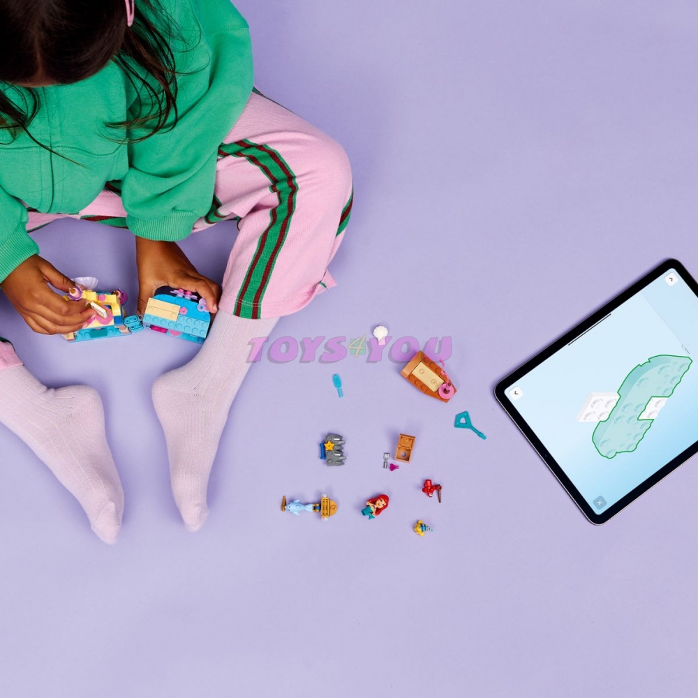 S fantastickou stavebnicí LEGO® | Disney Princess Ariel a její kouzelný miniaturní palác (43285) pro fanoušky Disney filmu Malá mořská víla od 5 let děti objeví svou kreativní stránku. Tato stavebnice v mikroměřítku obsahuje celý svět uvnitř i vně. Stavebnice LEGO pro kluky i holky obsahuje 3 postavy LEGO | Disney: Ariel, Šupinku a Sebastiana, miniaturní palác s jeskyní, kterou lze zavřít a zamknout klíčem, loďku a spoustu dalších prvků. Přenosný model miniaturního paláce je jako stvořený pro zábavu doma i na cestách. Tato zábavná stavebnice poslouží jako skvělý dárek k narozeninám nebo jakékoli jiné příležitosti pro holky i kluky. Stavebnice paláce se pyšní spoustou funkcí a doplňků pro nekonečné herní možnosti. Při vymýšlení vlastních příběhů děti získají sebevědomí a rozvinou svou představivost. Užijte si intuitivní stavění modelu s aplikací LEGO Builder, která vám umožňuje přibližovat a otáčet model ve 3D a ukládat a sledovat postup stavění. Stavebnice obsahuje 179 dílků. Věk: 5+.