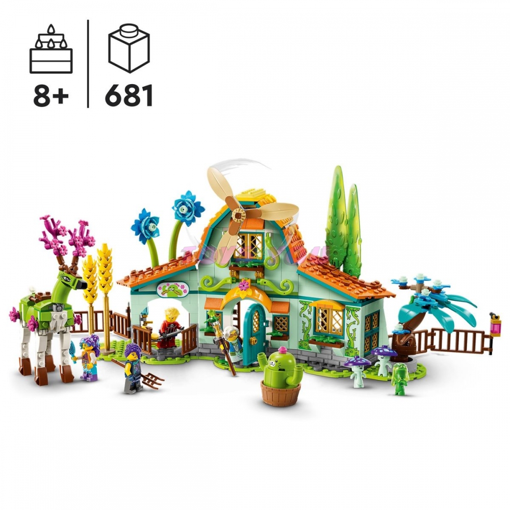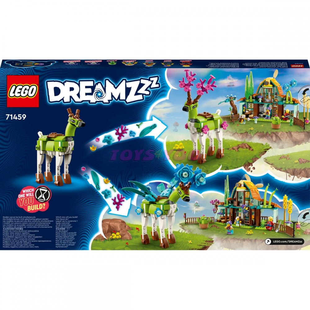 Stavebnice LEGO® DREAMZzz™ (71459) Stáj snových stvoření je inspirována televizním seriálem a zavádí děti od 8 let do kouzelného světa plného přírodních detailů a nových kamarádů, kde se setkají s bájnými stvořeními a postarají se o kouzelné květiny. Je plná úžasných detailů, které podnítí dětskou představivost. Děti nadchne prozkoumávání funkčního větrného mlýnu, stodoly (s otevíracími okny a vraty) a seznamování se s bájnými novými kamarády, jako jsou 2 stvoření ze Světa snů. 1 stavebnice,2 varianty ke stavění Stavebnice umožňuje 2 varianty ke stavění. Děti mají na výběr mezi ozdobením jelena jako létajícího pegase nebo nádherného ochránce lesa. Užijí si tak dvojnásobnou dobu hraní a rozvíjení kreativity. Fantastické detaily Jelen má pohyblivou hlavu a nohy a snadno se tak přizpůsobí hraní a místo paroží mu můžete nasadit květiny ze stáje. Součástí jsou propracované minifigurky Izzie, Zoey, Coopera a paní Castillové.