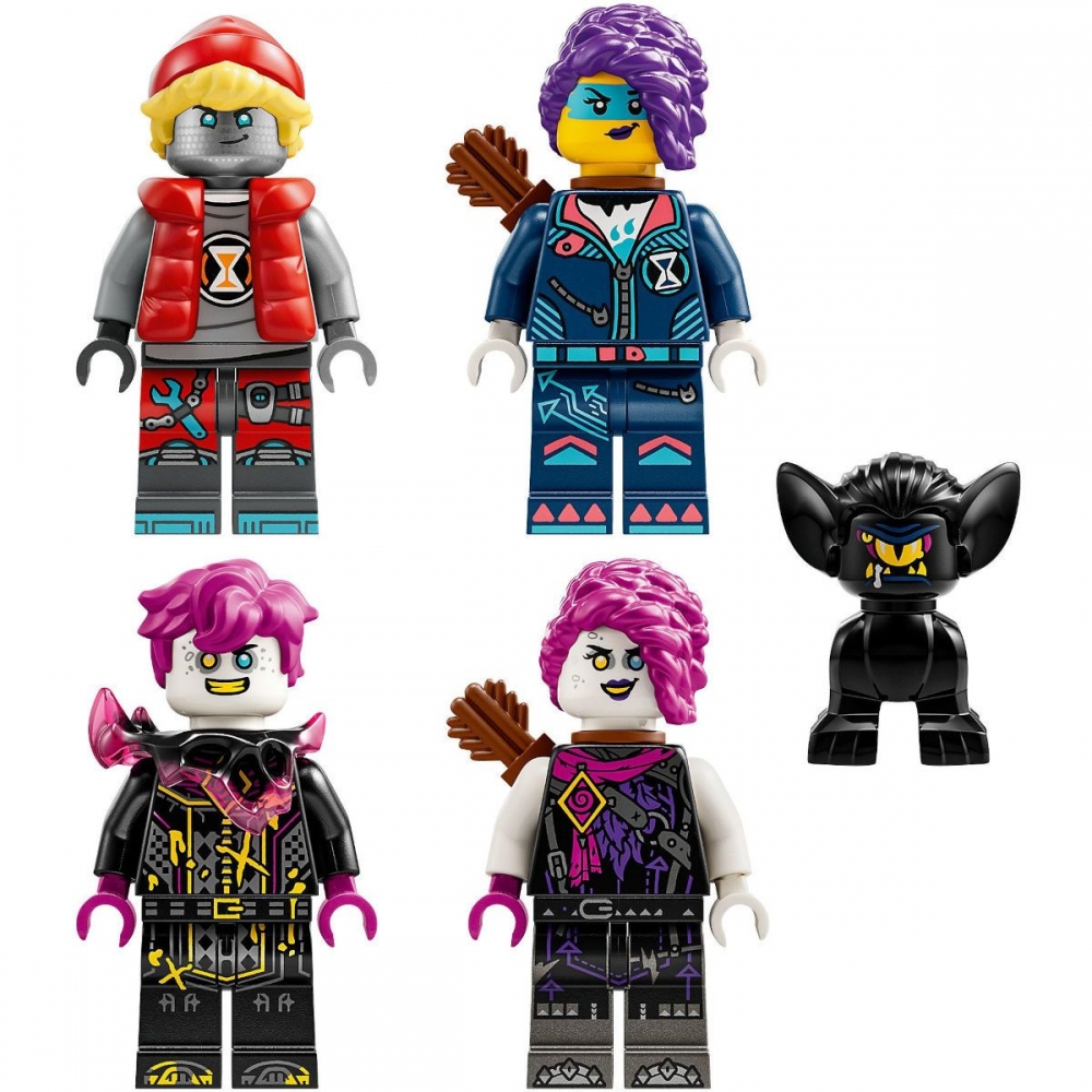 4 minifigurky – Stavebnici přivádějí k životu hrdinové Zoey a Cooper a jejich temní dvojníci Doey a Dooper a součástí je také figurka Sneaka