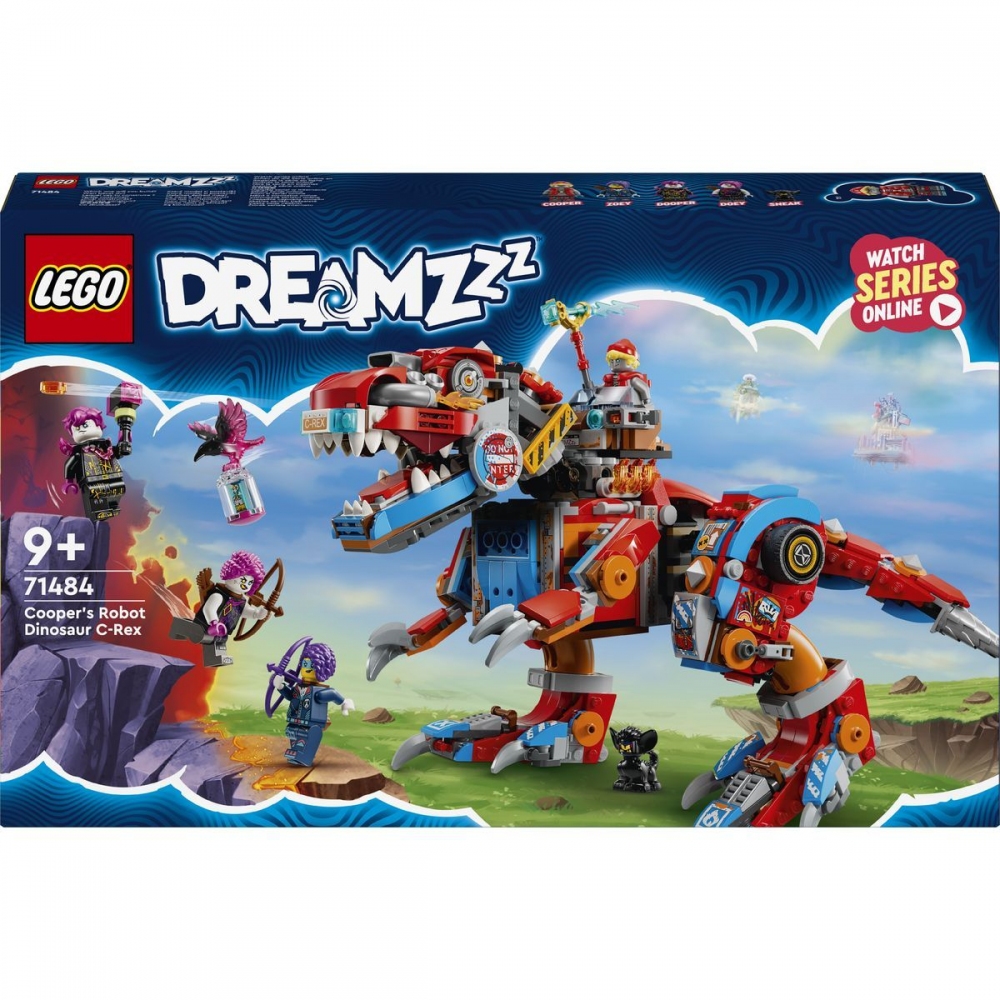 Popusťte uzdu fantazii se stavebnicí LEGO® DREAMZzz™ (71484) Cooperův robotický dinosaurus C-Rex pro děti od 9 let, kterou lze sestavit jako dinosaura T-rexe. Stavebnice na motivy napínavého televizního seriálu dětem přináší hned 2 způsoby sestavení parádního modelu dinosaura.