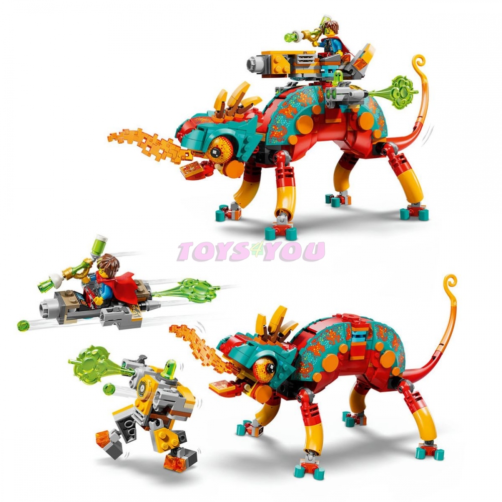 • Přestavitelná stavebnice – Chameleon má pohyblivou tlamu, hlavu, ocas, oči a nohy a lze jej postavit v režimu ohnivého chameleoního strážce s blasterovou věží a vystřelovači nebo tryskáč s minirobotem