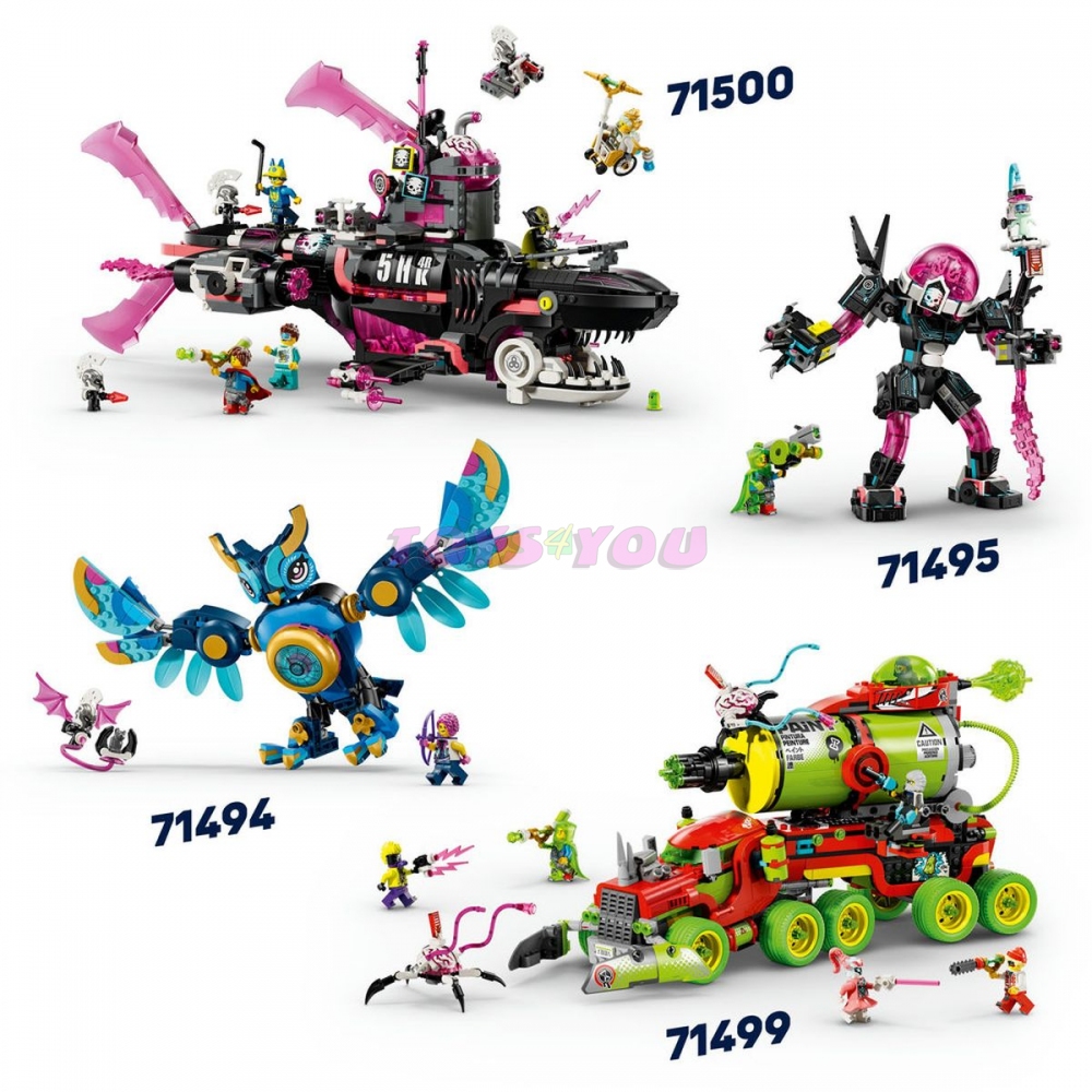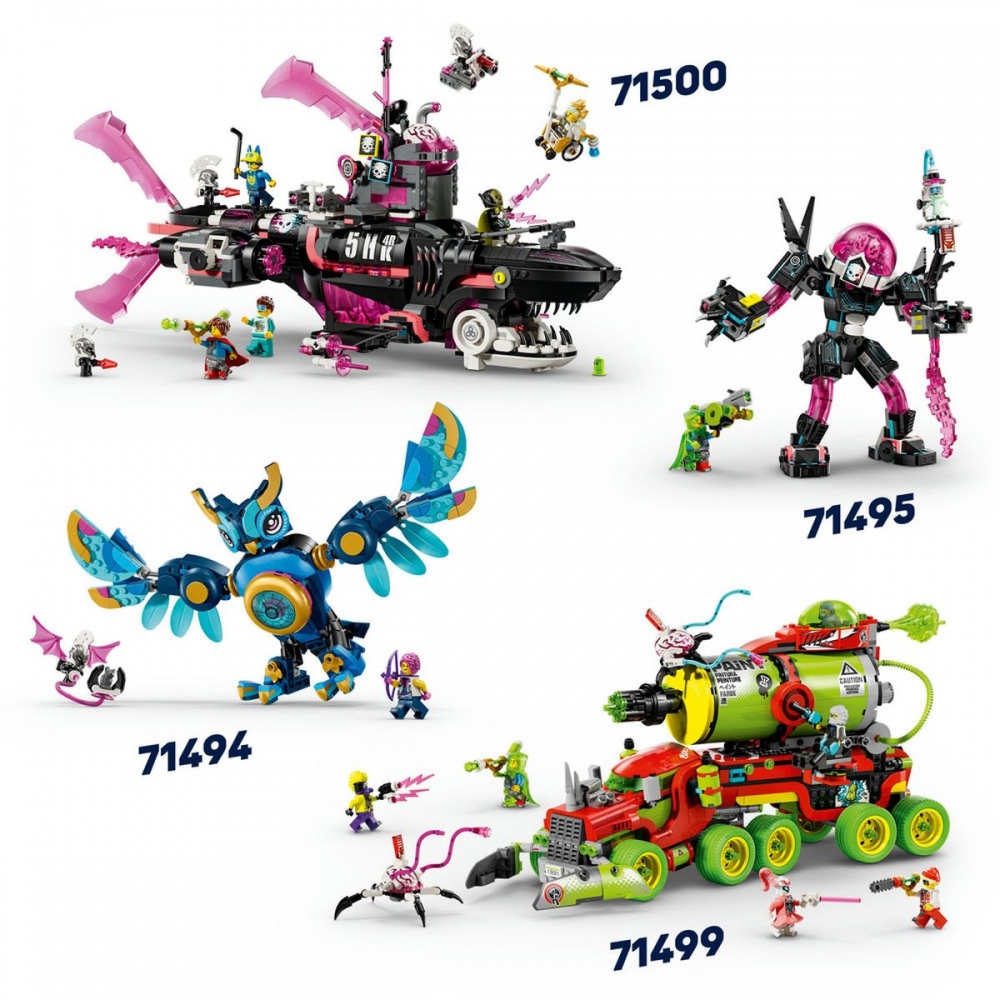 • Hračky LEGO® DREAMZzz™ – Pokračujte v kreativním hraní s dalšími stavebnicemi LEGO DREAMZzz (prodávají se samostatně), včetně stavebnic s vozidly a roboty