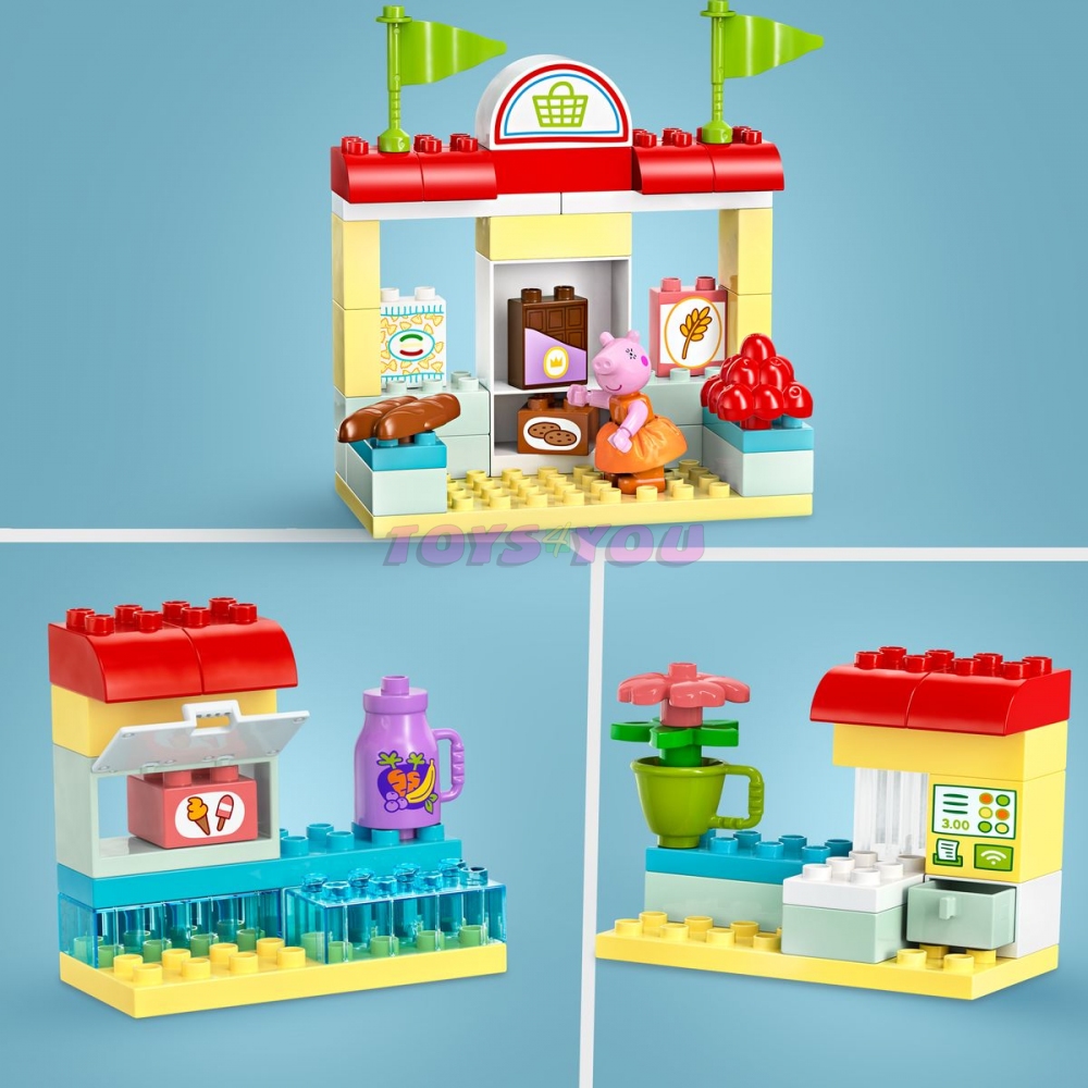 S touto vzdělávací hračkou LEGO DUPLO Prasátko Peppa inspirovanou televizním seriálem pro menší děti si malí stavitelé zahrají na nákup a prohloubí své dovednosti. Celá rodina může během hraní zkoumat i své pocity. Tato scénka podnítí konverzaci o chování v obchodě a – to je nejdůležitější! – o tom, kdo bude tlačit vozík.
