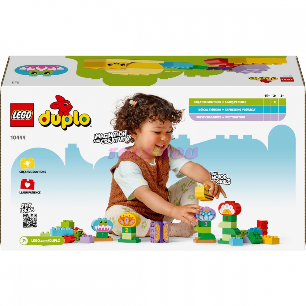 Pomozte své ratolesti rozvíjet kreativitu a jemné motorické dovednosti se stavebnicí LEGO® DUPLO® Město (10444) Kreativní zahrada a květiny. Tato stavebnice obsahuje 45 kostek na sestavení barevných květin, roztomilých zvířátek a hmyzu LEGO DUPLO a inspiruje kreativní děti k sestavení neustále se měnící krásy z kostek.
