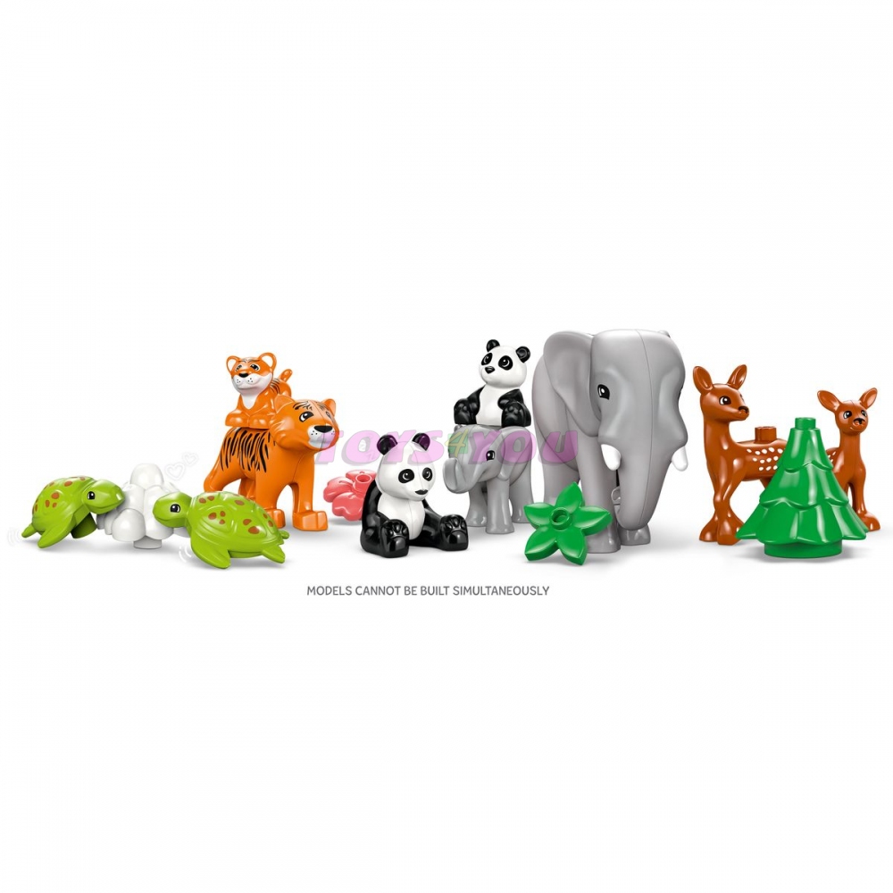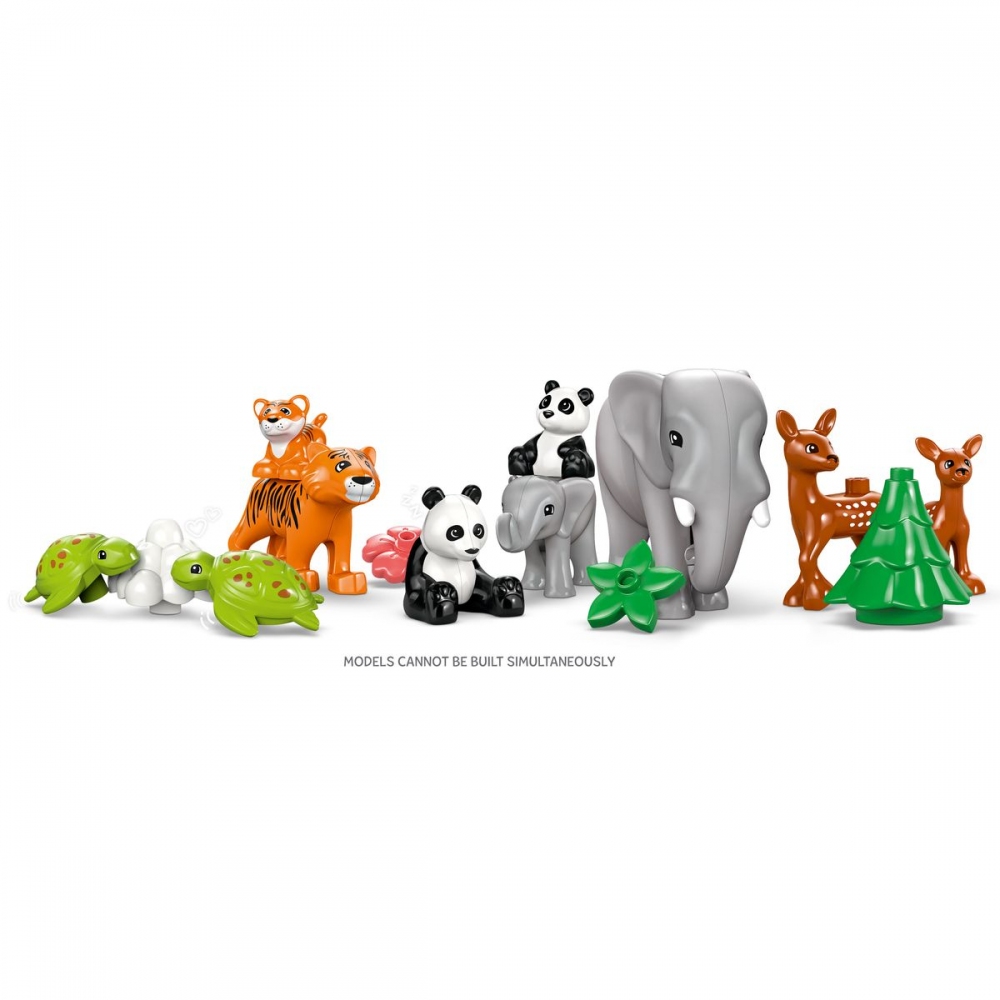 Nápaditá hračka s 10 divokými zvířaty LEGO® DUPLO® pro kreativní vytváření příběhů – Součástí jsou figurky tygra, slona, jelena a pandy, které mají mláďata, a 2figurky želv