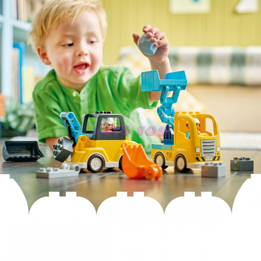 ROZMĚRY – Tato stavebnice LEGO® DUPLO® se skládá z 22 dílků a model bagru měří přes 11 cm na výšku, 22 cm na délku a 7 cm na šířku. Věk_: 2+. Počet kostek: 22