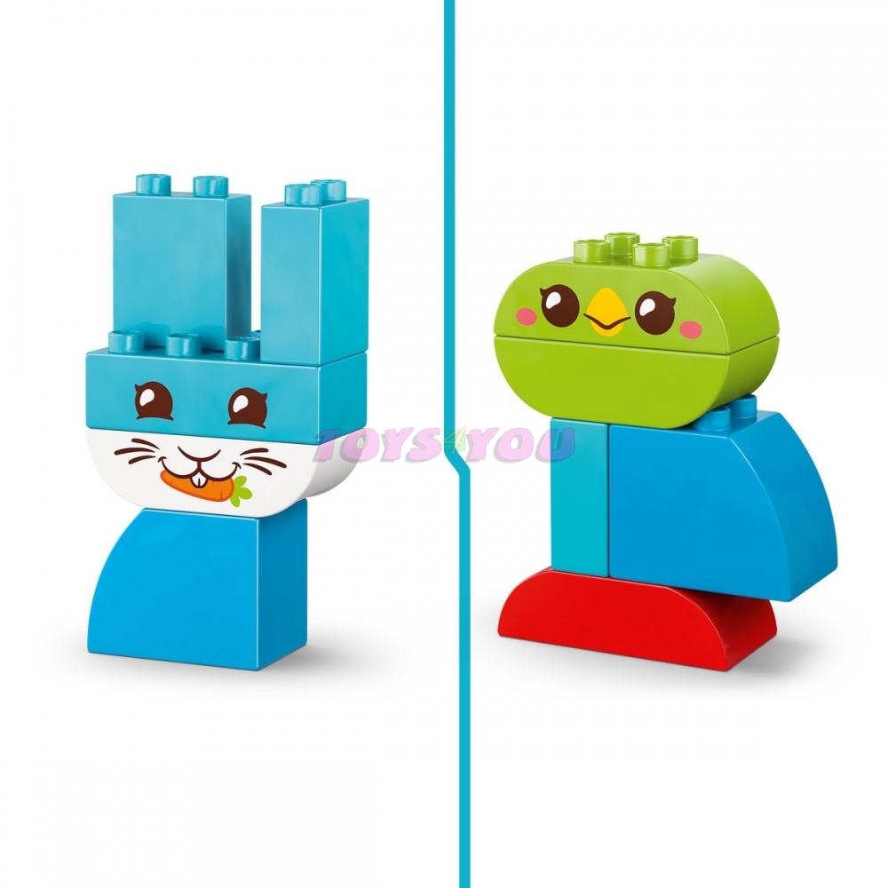 STAVĚNÍ JE HRAČKA – Modely zvířátek se skládají z velkých barevně odlišených kostek LEGO® DUPLO®, se kterými se snadno manipuluje. Navíc mají jasně rozpoznatelné obličeje, aby i ti nejmenší stavitelé zvládli postavit svého oblíbeného mazlíčka