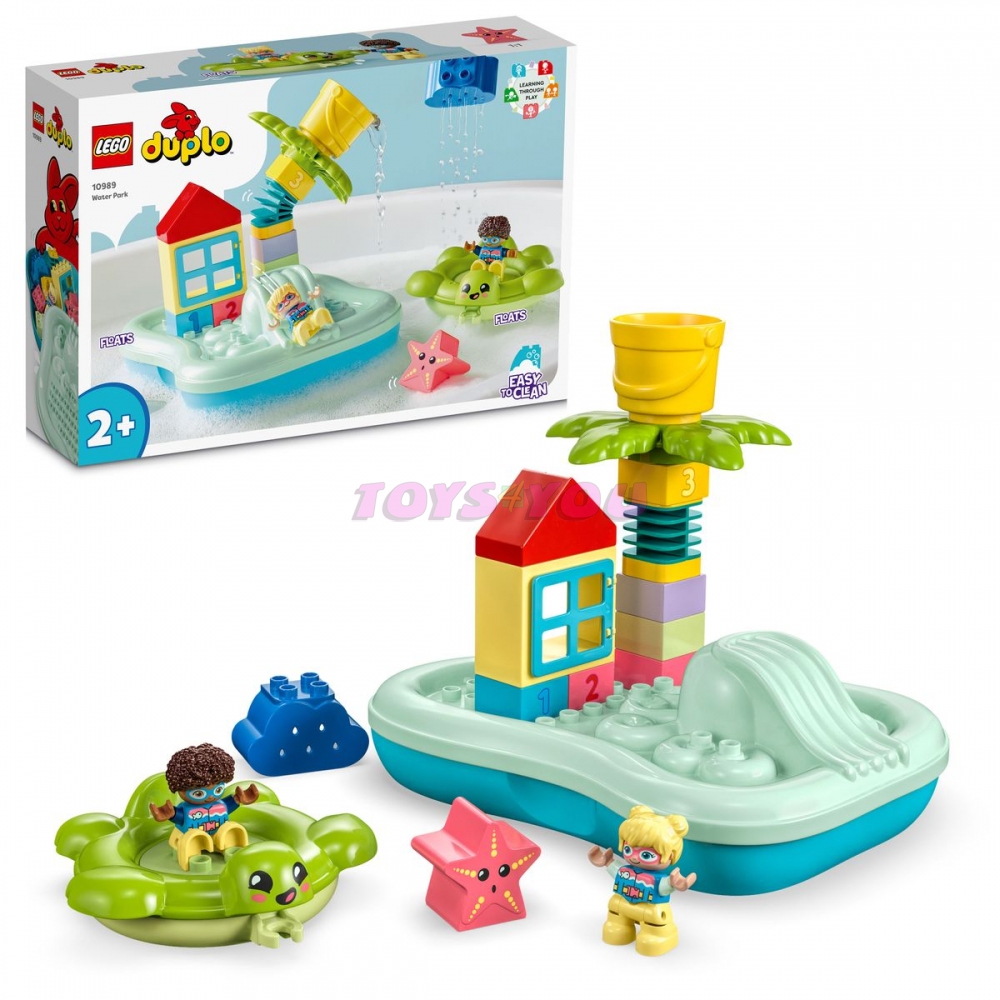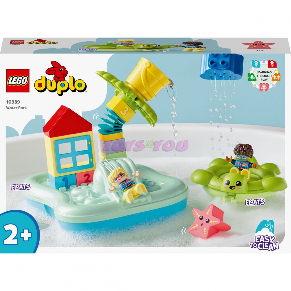 Hledáte tu nejlepší hračku do koupele pro malé děti od 2 let? Hračka LEGO® DUPLO® Město 10989 Aquapark promění koupání na zábavné učení, kdy děti prozkoumávají tento barevný aquapark. Současně seznamuje malé plaváčky s čísly a rozvíjí jejich schopnost nalévat vodu. Tuto stavebnici také snadno očistíte a uložíte.