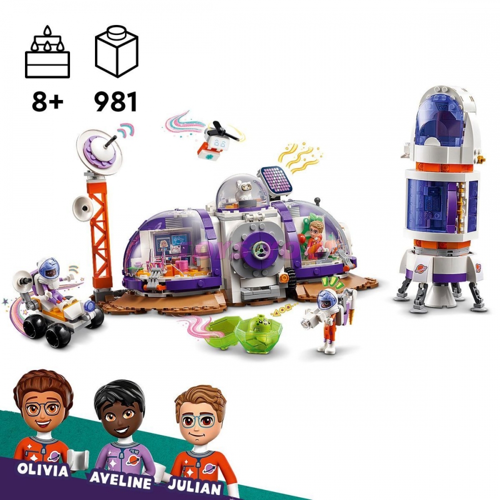 LEGO® Friends Základna na Marsu a raketa – Součástí stavebnice je raketa, výzkumná základna a vesmírné vozítko a sada tak představuje zábavný dárek pro děti od 8 let, které milují vesmír