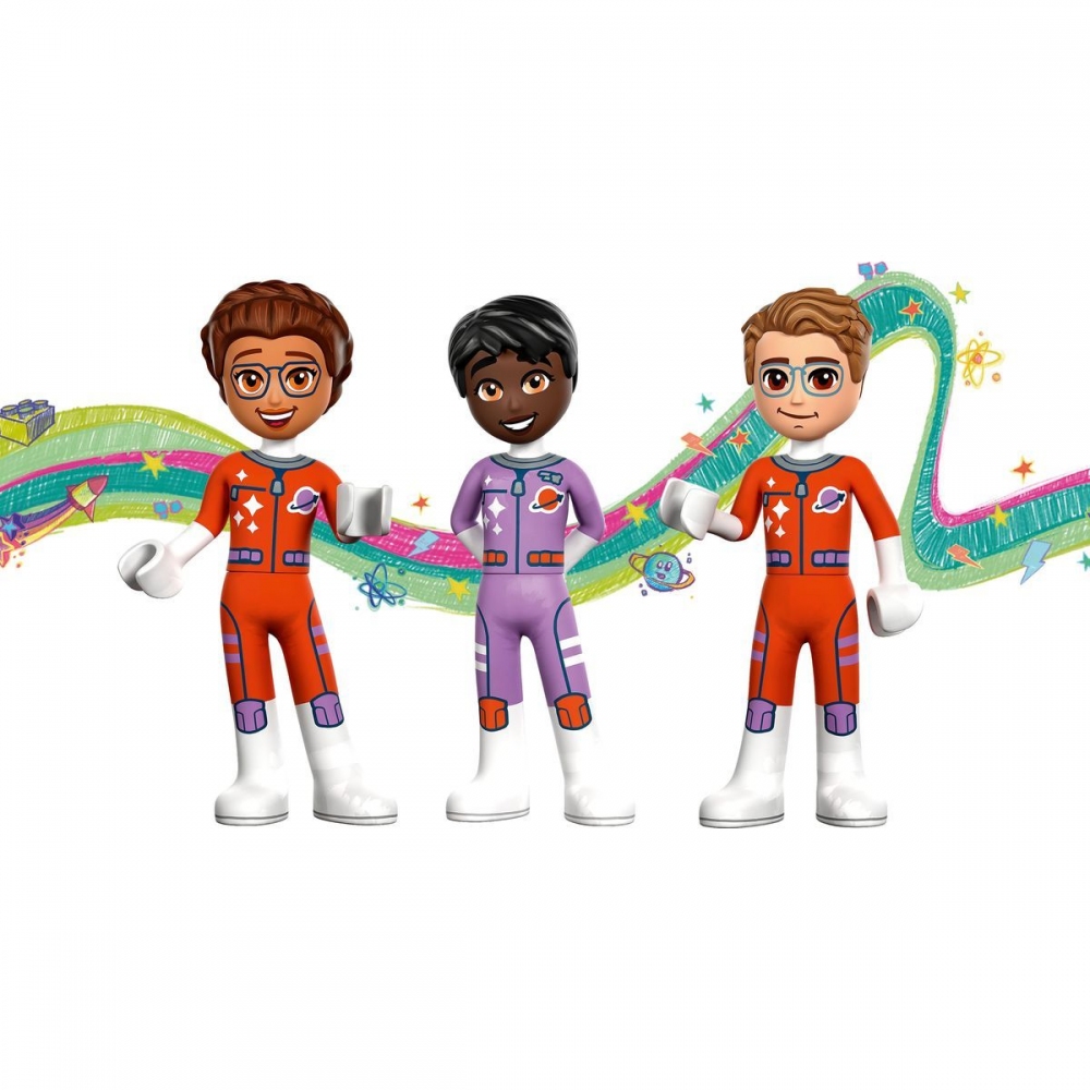 3 minipanenky a kocour – Součástí stavebnice jsou Olivia a Julian, klasické postavy z řady LEGO® Friends, které dospěly a staly se astronauty,velitelka Aveline a figurka vesmírného kocoura