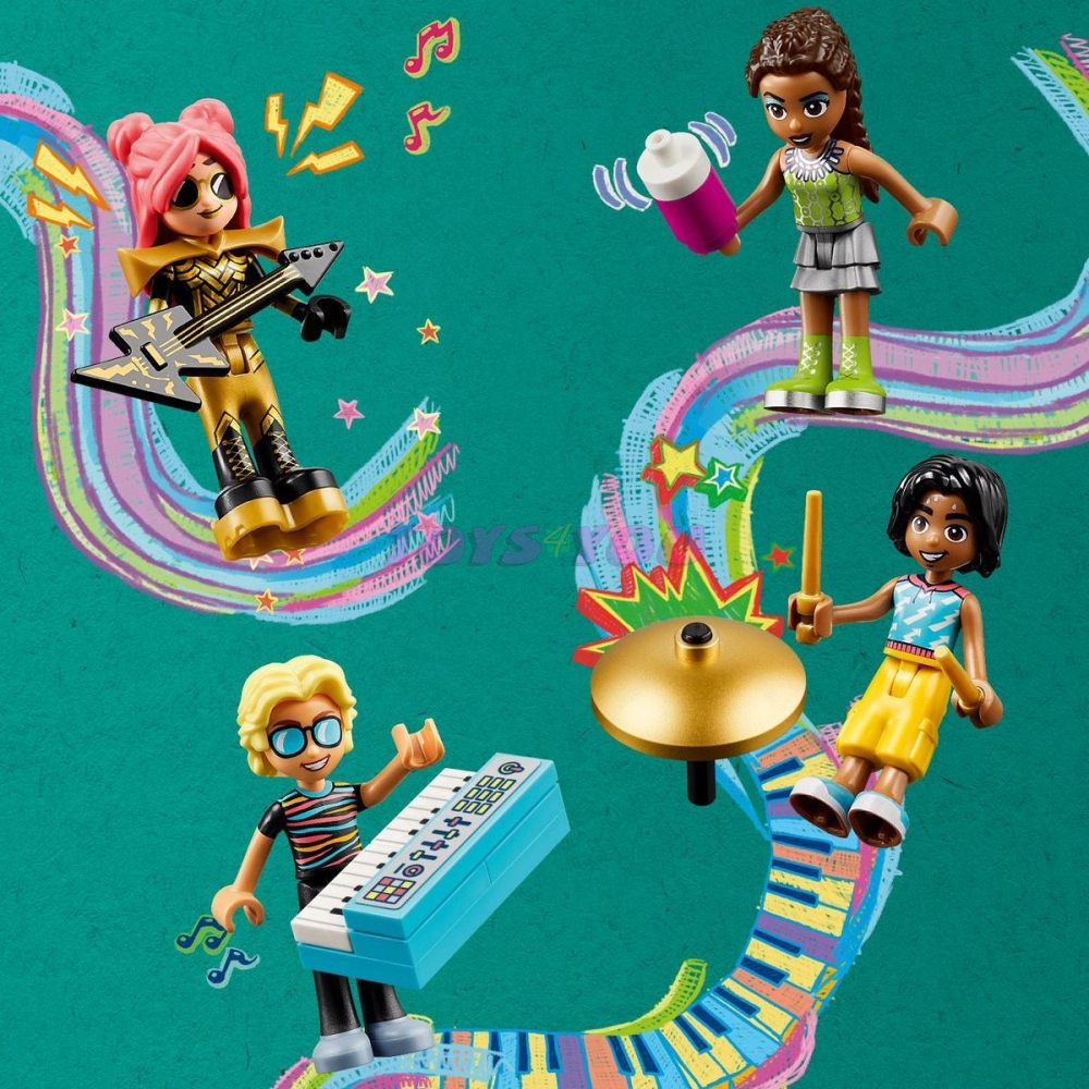 4 postavy LEGO® Friends – Součástí je Andrea, klasická postava z řady Friends, která dospěla a vrací se jako porotkyně talentové soutěže, zpěvačka Ley-La, bubeník Nabil a klávesista Alexander