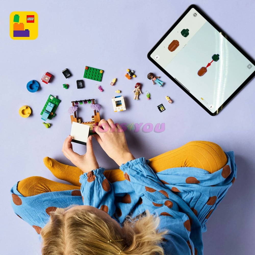 • 2 postavy LEGO® Friends – Součástí této hračky jsou minipanenky Paisley a Aliyi, které děti inspirují k vymýšlení příběhů, ve kterých kamarádky sledují filmy na Paisleyině zahradě