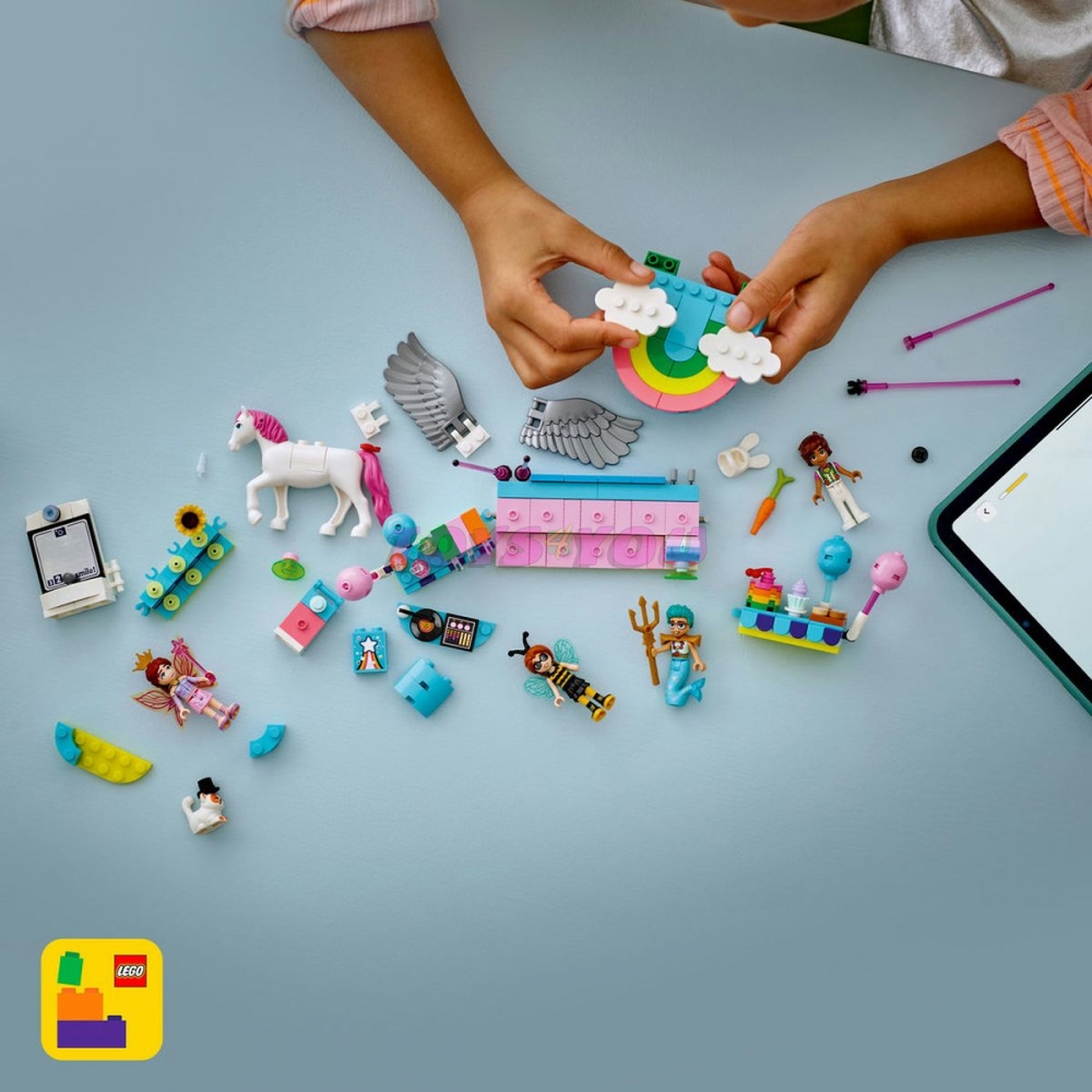• Stavebnice inspirující ke kreativnímu hraní – Stavebnice LEGO® Friends Kostýmová párty s jednorožcem a vílou obsahuje zábavnou scénu z párty s djským pultem, která potěší holky a kluky od 6 let
