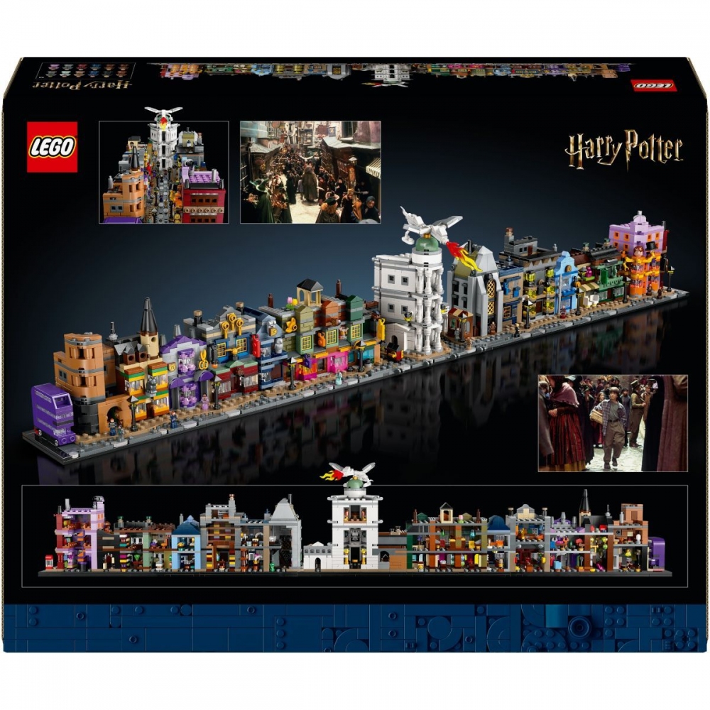 Miniaturní obchody v Příčné ulici – Postavte si miniaturní verze slavných míst, jako je Velkoprodejna Mžourov, Gringottova kouzelnická banka, Děravý kotel, redakce Denního věštce a Záchranný kouzelnický autobus