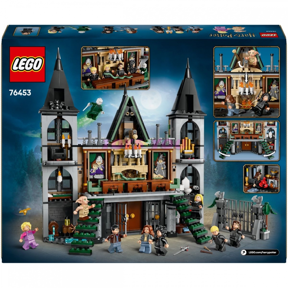 Rozměry – Stavebnice se skládá z 1601 dílků a model Sídla rodu Malfoyů měří přes 31 cm na výšku, 30 cm na šířku a 17 cm do hloubky. Věk: 10+. Počet kostek: 1601.