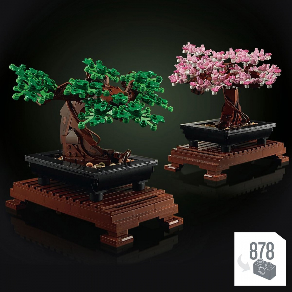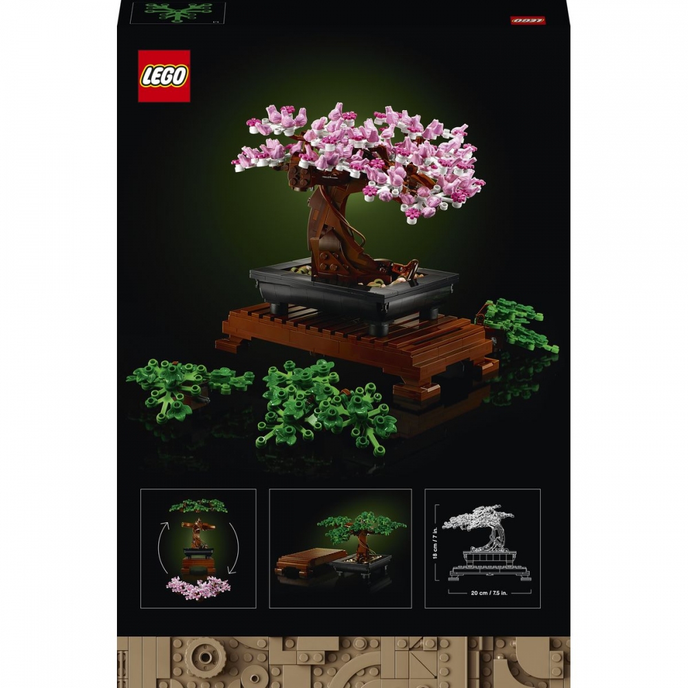 Umění pěstování bonsajů uchvacuje fantazii milovníků stromů po celá staletí. Nyní můžete toto starodávné umění oslavit pomocí LEGO® stavebnice s modelem bonsaje. Vychutnejte si pocit klidu, který zažijete při tvarování bonsaje pomocí zelených listů nebo růžových třešňových květů. Když zatoužíte po změně, jednoduše vyměňte barevné koruny a dosáhněte zcela nového vzhledu. Prohlédněte si růžové květy pořádně zblízka – vidíte malé žabky, které tvoří jednotlivé květy? Obsahuje vyměnitelné dílky, díky nimž můžete svůj bonsaj stylizovat buď pomocí klasických zelených lístků, nebo růžových třešňových květů. Měří přes 18 cm na výšku, 21 cm na délku a 20 cm na šířku. Obě sady listů si můžete uspořádat podle sebe, takže vždy docílíte jedinečného vzhledu. Měňte barvy podle ročního období, aby váš model zůstal středem pozornosti doma i v kanceláři po celý rok. Počet kostek: 878. Věk: 18+