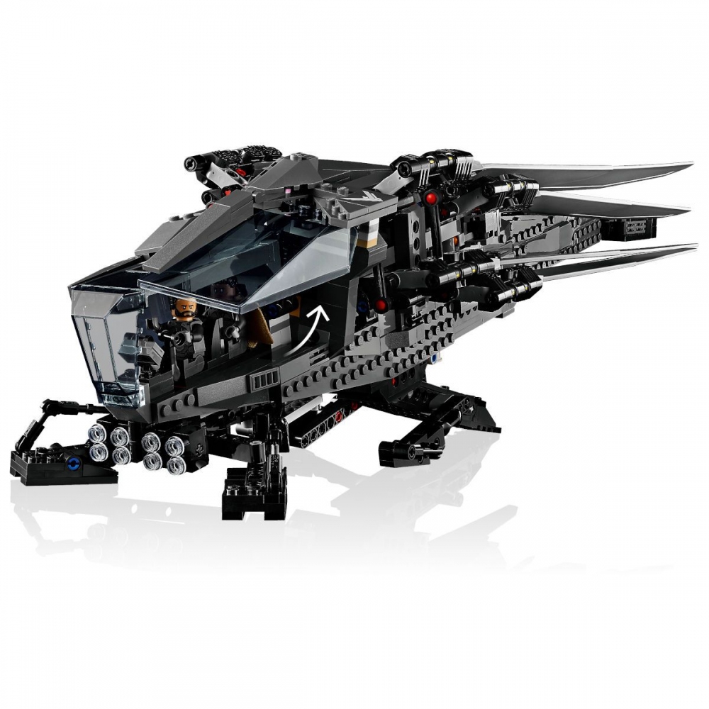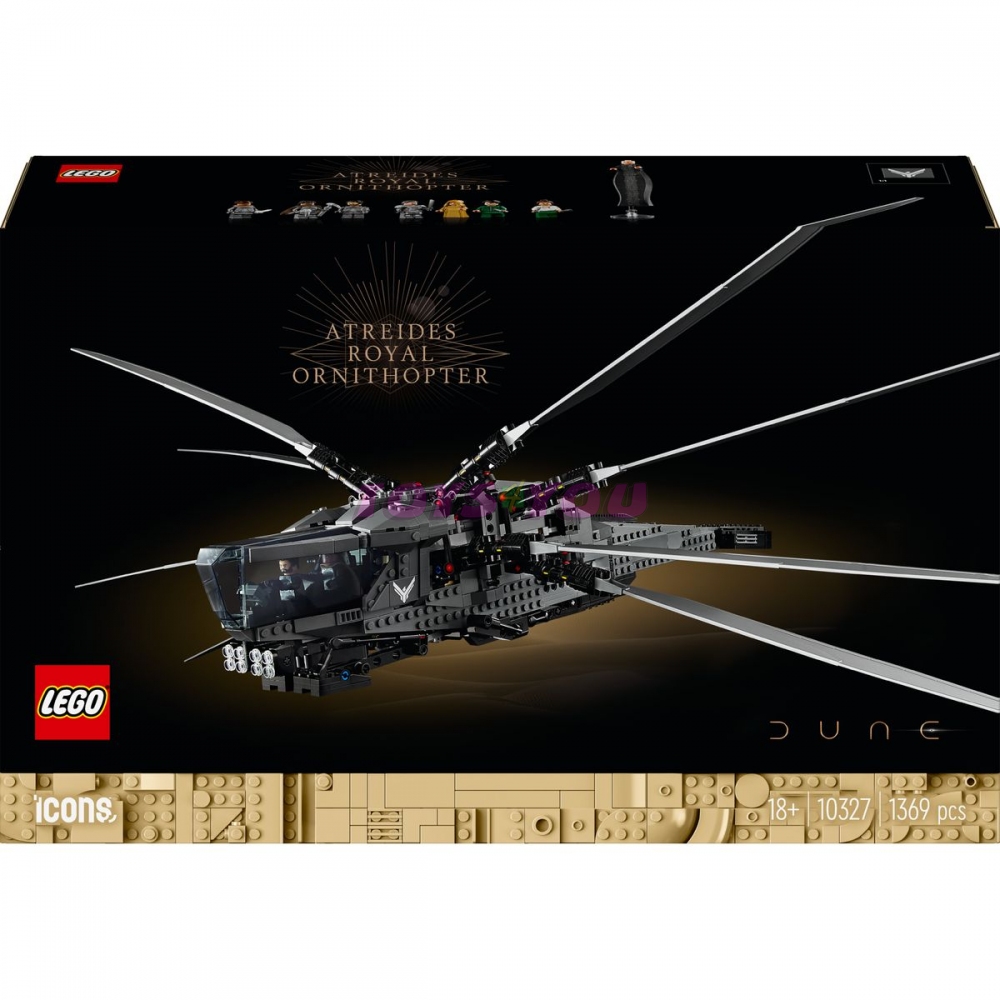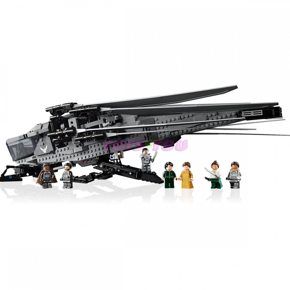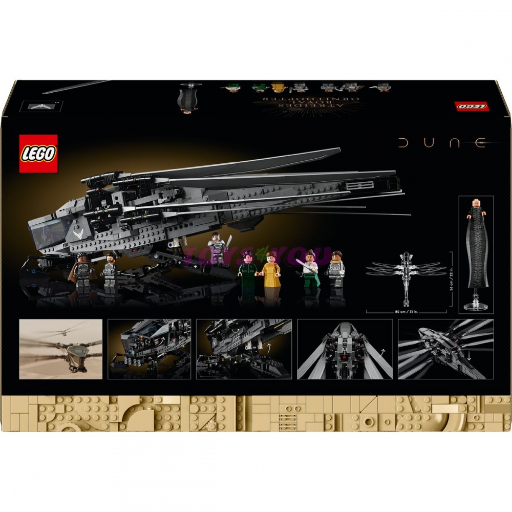 Součástí této prémiové stavebnice je replika ornitoptéry s vyklápěcími mávajícími křídly, zatahovacím podvozkem a otevíracím kokpitem. Nechybí ani 8 slavných postav z filmu: Paul Atreides, lady Jessica, Gurney Halleck, Chani, Leto Atreides, Liet Kynes, Duncan Idaho a baron Harkonnen ve své dlouhé róbě.