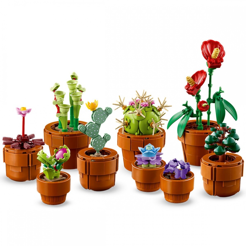 LEGO® Icons 10329 Miniaturní rostliny - Rozvíjejte svou kreativitu se stavebnicí LEGO® Icons (10329) Miniaturní rostliny pro dospělé. Sestavte 9 modelů inspirovaných rostlinami ze suché a tropické oblasti a masožravými rostlinami, které mají vlastní terakotové květináče z kostek. Vyberte si různé modely se snadnou, střední nebo pokročilou úrovní obtížnosti a vyzdobte si domov moderním doplňkem.