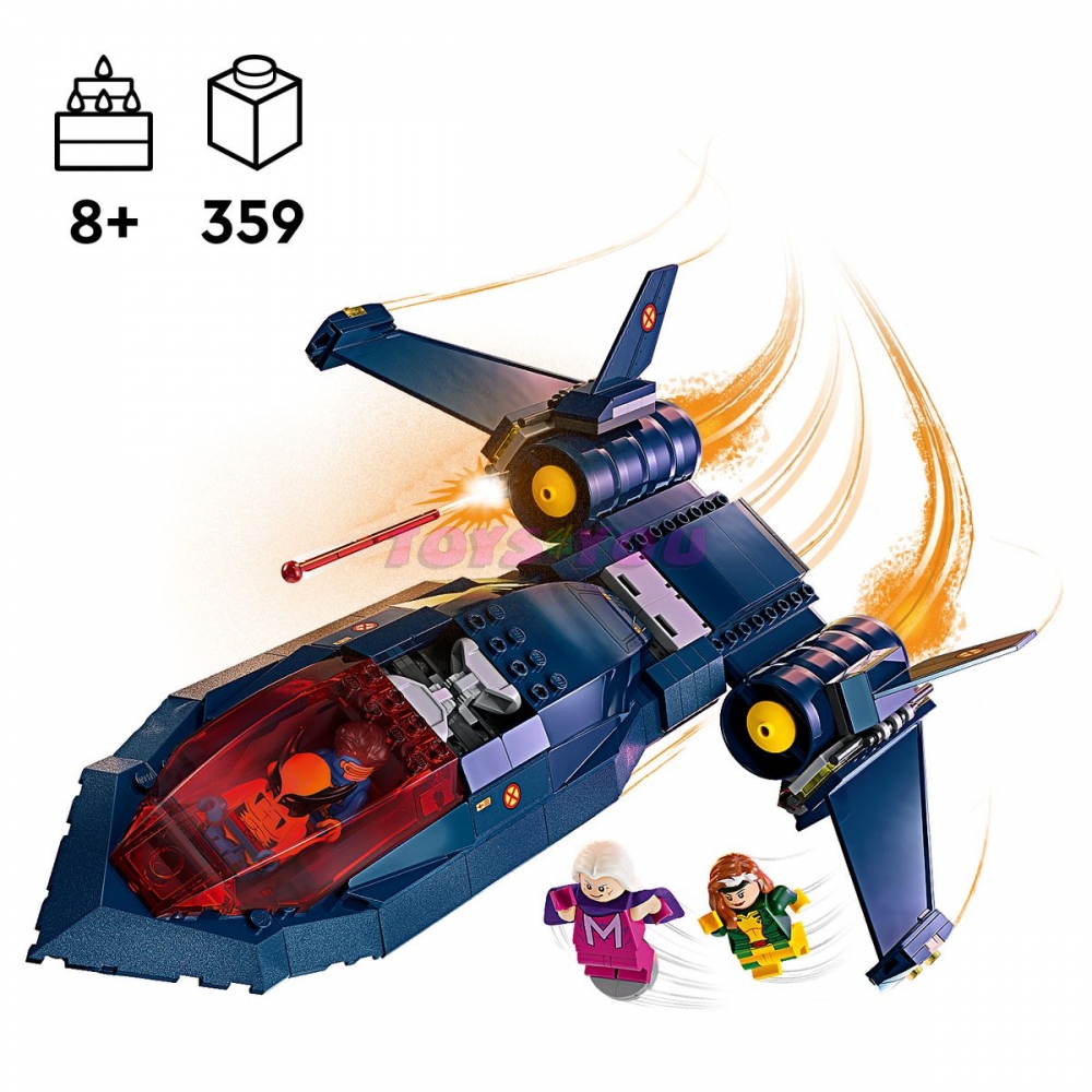 Tento úchvatný model inspirovaný tryskáčem X-Jet ze seriálu X-Men ’97 inspiruje malé stavitele k nekonečným akčním dobrodružstvím s minifigurkami Cyclopse, Rogue, Magneta a Wolverina. V sestavitelném modelu najdete dvojitý kokpit s místem pro 4 minifigurky, 2 vystřelovače na každé straně tryskáče a 2 pružinové vystřelovače pod křídly. Nechybí ani 2 odnímatelné boxy, do kterých děti uloží další dílky na vystřelování, a dlouhé Wolverinovy drápy, které lze připojit k minifigurce. Pro ještě více digitální zábavy je zde zábavná a intuitivní aplikace LEGO Builder, kde mohou stavitelé přibližovat a otáčet modely ve 3D a sledovat postup.