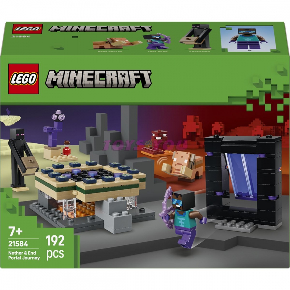 Vydejte se s milovníky Minecraftu na herní dobrodružství se stavebnicí Cesta portálem do Netheru a Endu (21584) pro kluky a holky od 7 let. Projděte portály, prozkoumejte modely jednotlivých biomů a vykročte vstříc dobrodružství s minifigurkou Cool hrdiny, figurkou Endermana a figurkou malého hoglina. Tato stavebnice LEGO® Minecraft obsahuje portál do Endu a portál do Netheru s funkcemi pro přístup k malým modelům jednotlivých biomů. Autentické doplňky, včetně kouzelného luku a léčivého lektvaru, inspirují k nekonečným kreativním dobrodružstvím se známými scénami a postavami z Minecraftu. Tato stavebnice představuje skvělý videoherní dárek pro milovníky Minecraftu, stavitele LEGO a fanoušky herních dekorací. A děti můžou stavět s jistotou díky aplikaci LEGO Builder – přibližujte a otáčejte model ve 3D a sledujte postup pomocí srozumitelného digitálního návodu. Stavebnice obsahuje 192 dílků.