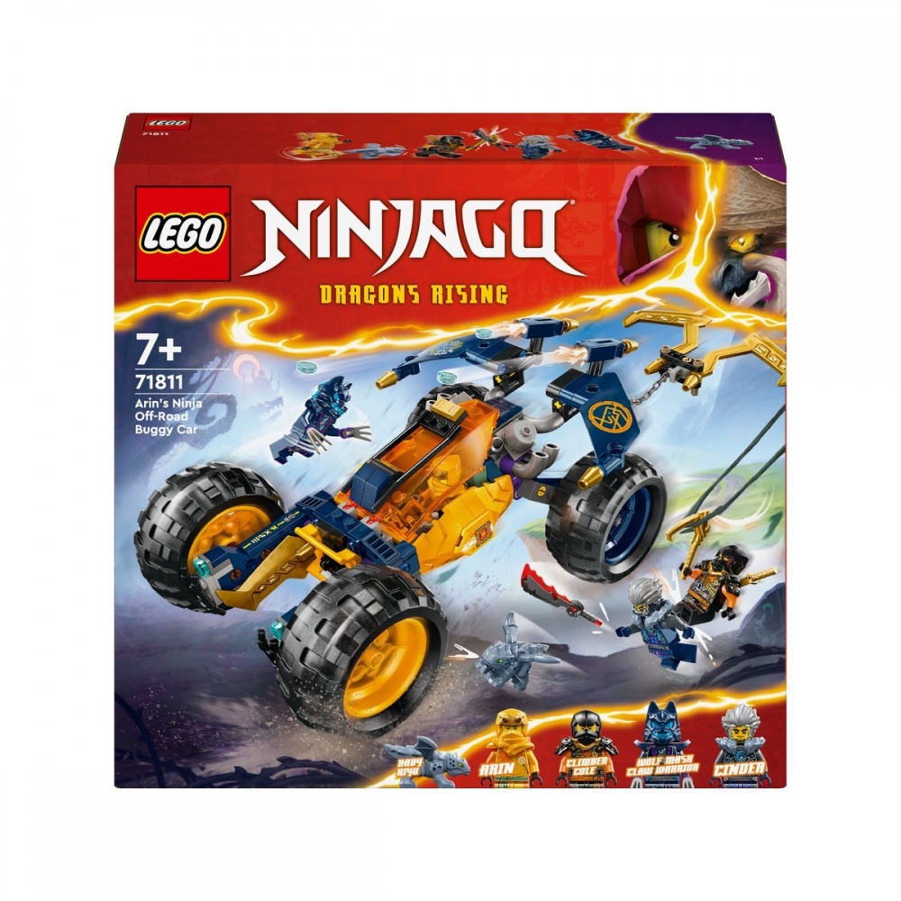Děti od 7 let si se stavebnicí LEGO® NINJAGO® (71811) Arin a jeho nindžovská terénní bugina připomenou velkolepé bitvy z 2. řady televizního seriálu NINJAGO Dračí povstání. Součástí této dobrodružné stavebnice je vozidlo v Arinově žluté barvě s pohyblivými koly, odpružením, otevíracím kokpitem pro 2 minifigurky, 2 vystřelovači s 6 střelami a velkým hákem na chytání padouchů.
