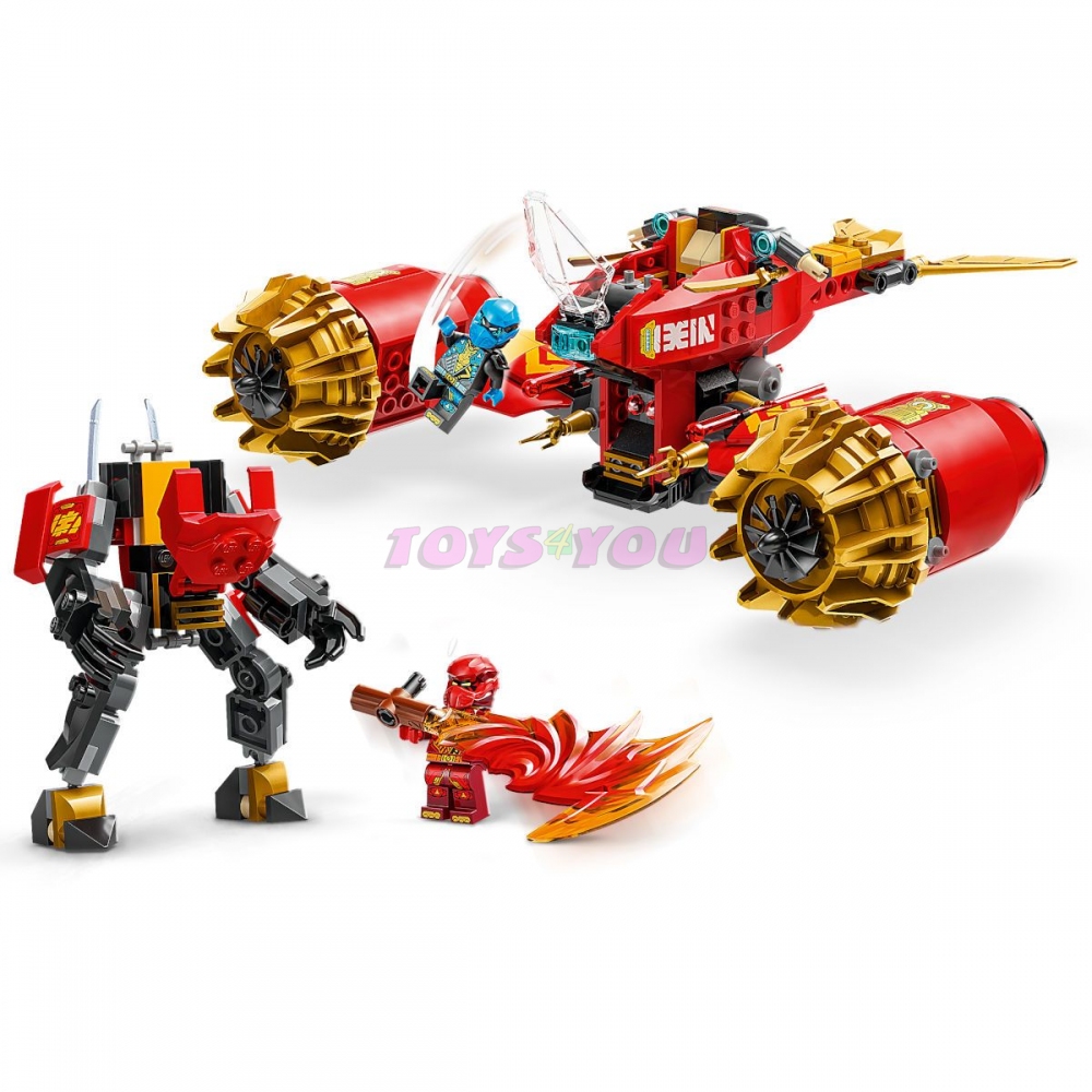 Kombinovaný model nindžovského vozidla – Toto velké vozidlo NINJAGO® lze rozdělit na 2 menší vozidla: Kaiova robota a Nyinu létající motorku, se kterými si děti užijí ještě větší porci nindžovského hraní