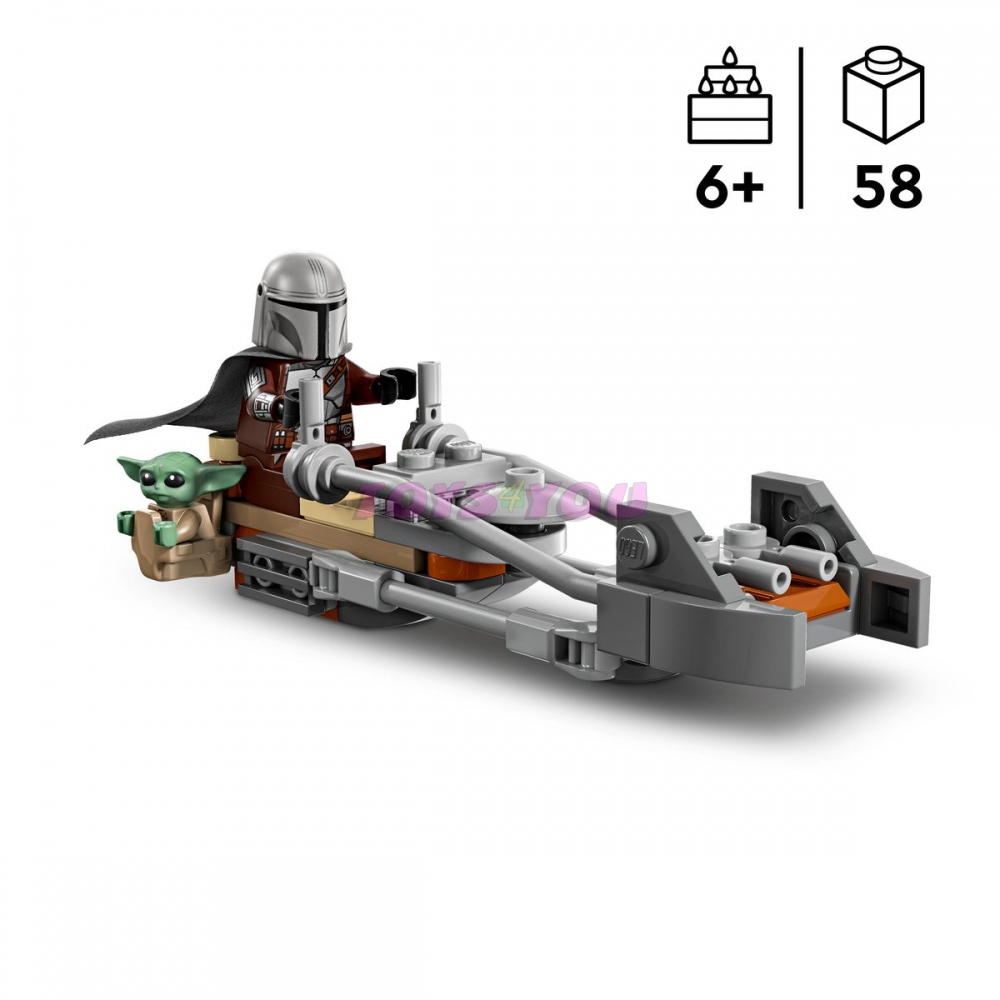 Úžasný dáreček Star Wars™ pro kluky a holky. Připomeňte si napínavé scény z planety Tatooine z 1. řady seriálu Star Wars: Mandalorian™ s touto skvělou stavebnicí. Model Mandalorian a Grogu a spídrová motorka (75436) z kostek LEGO® představuje krásný dáreček pro kluky i holky od 6 let. Umístěte minifigurku LEGO Mandaloriana na sedadlo řidiče a figurku LEGO Grogua do brašny na boku. Na zadní část vozidla připevněte Mandalorianovu blasterovou pušku –?????? a můžete se vydat do akce! Stavebnice je navržena tak, aby ji děti mohly rychle sestavit a bez otálení se pustit do hry plné akce. Navíc zažehne jejich fantazii při vymýšlení vlastních dobrodružství s ikonickými postavami z galaxie Star Wars™. Díky aplikaci LEGO Builder mohou děti stavět s větší jistotou a oporou – své modely můžou přibližovat, otáčet modely ve 3D a sledovat postup pomocí srozumitelného digitálního návodu. Stavebnice obsahuje 58 dílků. Věk : 6+