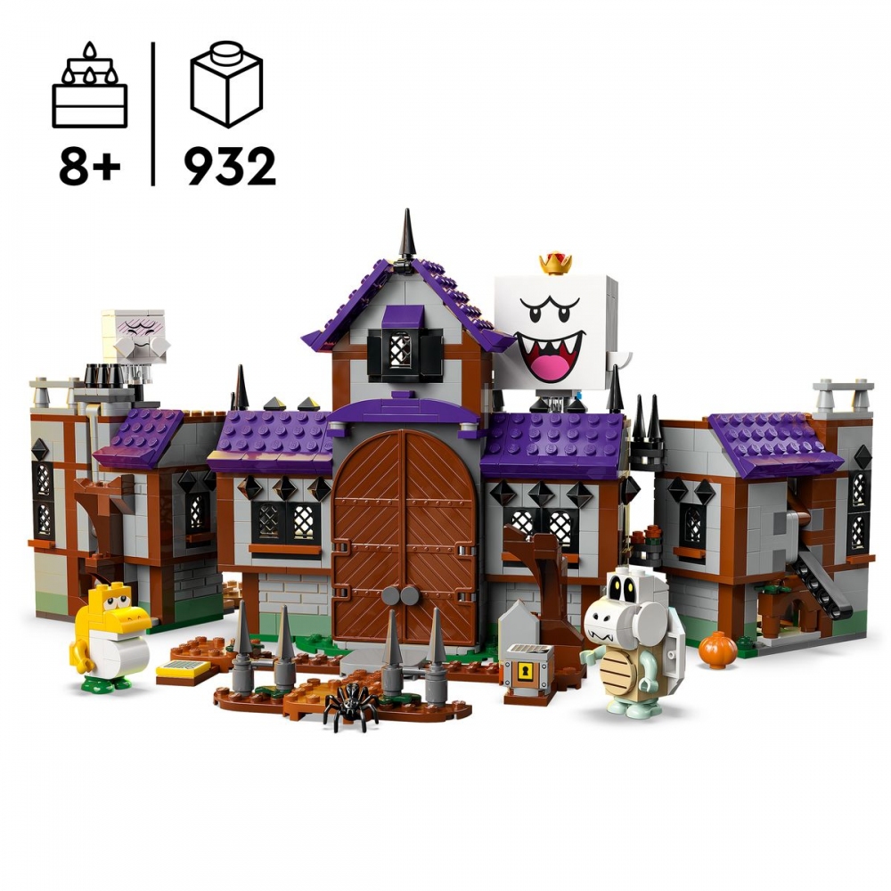Setkejte se s přízračnými postavami a najděte klíč k truhle s pokladem v setu King Boo a strašidelné sídlo (71436) z řady LEGO® Super Mario™. Tato dobrodružná sada představuje skvělý dárek pro kluky, holky a milovníky videoher od 8 let. Součástí je sestavitelný strašidelný dům, který lze otevřít, a pro snadný přístup k hravým detailům, jako je zvedací pohovka a knihovna s funkcí odhalení klíče. Součástí jsou také 4 figurky LEGO Super Mario – King Boo, Yellow Baby Yoshi, Dry Bones a Boo.