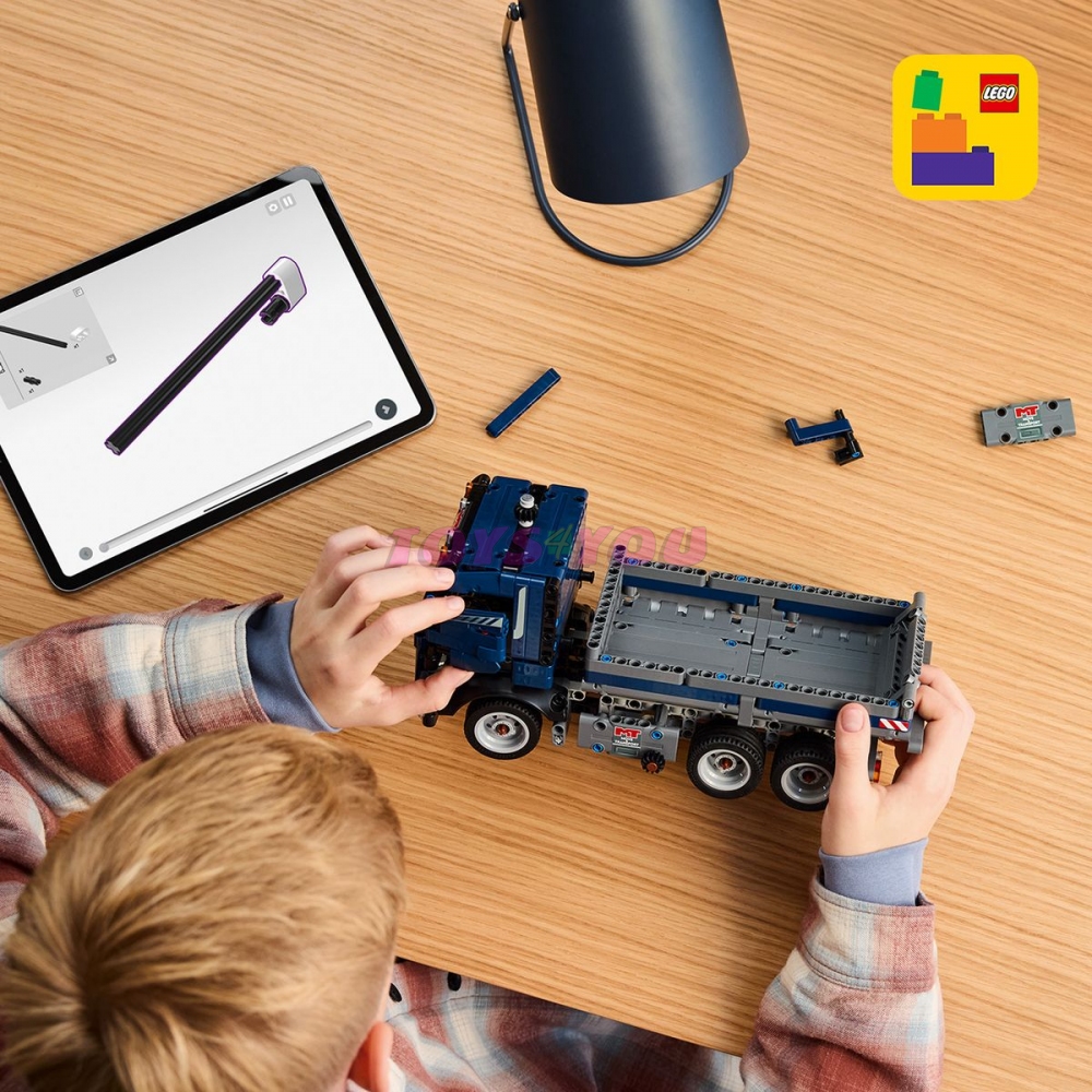 Děti od 9 let čekají nekonečná dobrodružství na staveništi se stavebnicí LEGO® Technic (42203) Nákladní sklápěč. Tato stavebnice modrého stavebního stroje umožňuje dětem od 9 let zahrát si na náročný pracovní den v roli řidiče sklápěče. Zajeďte se sklápěčem na místo a otočením knoflíku na boku náklaďáku sklopte korbu. Otevřete dveře, podívejte se dovnitř kabiny a pak s nákladním vozidlem vyrazte na další misi na staveništi.