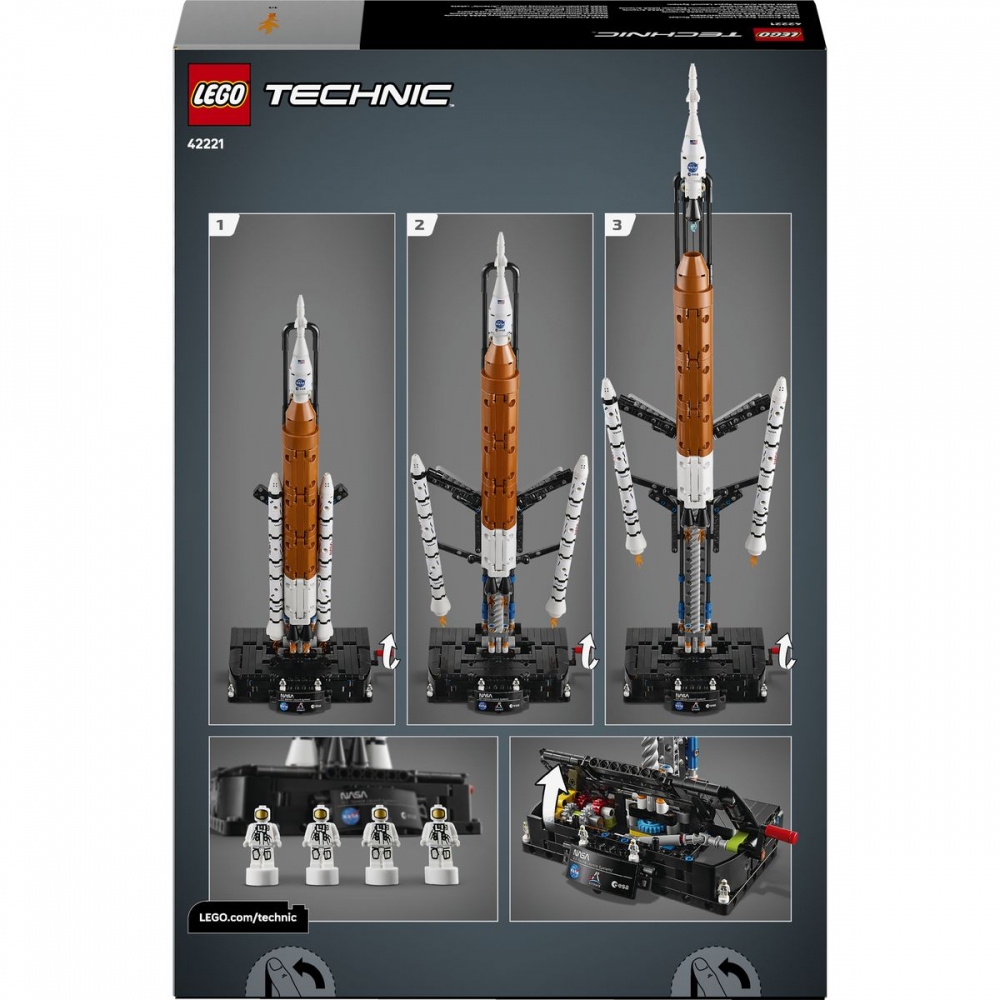Vydejte se na cestu plnou objevů se stavebnicí Raketa NASA Artemis Space Launch System (42221) pro holky a kluky od 9 let. Vzdělávací stavebnice LEGO® Technic zachycuje okamžik startu rakety ve třech různých fázích. Otáčejte klikou a sledujte, jakse pevné raketové motory oddělí od centrálního stupně, který se poté také odpojí. Pokračujte v otáčení a sledujte, jak se odděluje horní stupeň s motorovým modulem, kosmická loď Orion a záchranný systém. Tato stavebnice rakety byla vyvinuta ve spoluprá ci s NASA a ESA a umožňuje dětem prozkoumat vesmírný startovací systém, který vynese kosmickou loď Orion na oběžnou dráhu Měsíce. Stavebnice obsahuje 4 nanofigurky astronautů, zábavné detaily v podobě modrých plamenů a informační panel, který hotový model skvěle doplní na výstavce. Tato stavebnice LEGO Technic představuje zábavný dárek pro milovníky vesmíru. Děti můžou stavět s jistotou díky aplikaci LEGO Builder, která jim umožňuje přibližovat a otáčet model ve 3D a sledovat postup pomocí srozumitelného digitálního návodu. Stavebnice obsahuje 632 dílků. POSTAVTE SI VESMÍRNÝ STARTOVACÍ SYSTÉM – Zachyťte okamžik startu rakety do vesmíru se stavebnicí LEGO® Technic Raketa NASA Artemis Space Launch System (42221) pro holky a kluky od 9 let PŘEHRAJTE SI PROCES ODDĚLENÍ – Tato vzdělávací stavebnice s raketou obsahuje ruční kliku, jejíž otáčením děti oddělí jednotlivé části rakety, a uvidí tak všechny tři fáze startu SPOLUPRÁCE S NASA – Tato stavebnice rakety byla vyvinuta ve spolupráci s NASA a ESA, a umožňuje dětem prozkoumat systém, který vynese kosmickou loď Orion na oběžnou dráhu Měsíce 4 NANOFIGURKY ASTRONAUTŮ – Tato stavebnice LEGO® Technic s vesmírnou tematikou obsahuje 4 nanofigurky astronautů a informační panel, které společně vytváří poutavý výstavní model, který děti rozhodně neomrzí NÁPAD NA DÁREK – Tato stavebnice LEGO® Technic představuje skvělý dárek pro kluky, holky a milovníky vesmíru od 9 let, kteří by si chtěli sestavit model znázorňující jednotlivé fáze startu rakety OBJEVTE DALŠÍ STAVEBNICE – Užijte si další hodiny akčního hraní s řadou stavebnic LEGO® Technic (prodávají se samostatně), která nabízí inspirativní realistické mechanismy a funkce pohybu pro malé stavitele ZÁBAVNÉ STAVĚNÍ – Proveďte děti na jejich příštím stavitelském dobrodružství intuitivní aplikací s návodem LEGO® Builder. Umožní jim ukládat si stavebnice, sledovat postup a přibližovat a otáčet modely ve 3D, zatímco na nich pracují ROZMĚRY – Stavebnice se skládá z 632 dílků a model měří přes 70 cm na výšku, 16 cm na délku a 8 na šířku, když je raketa nahoře Raketa NASA Artemis Space Launch System. Kostky: 632. Věk: 9+.