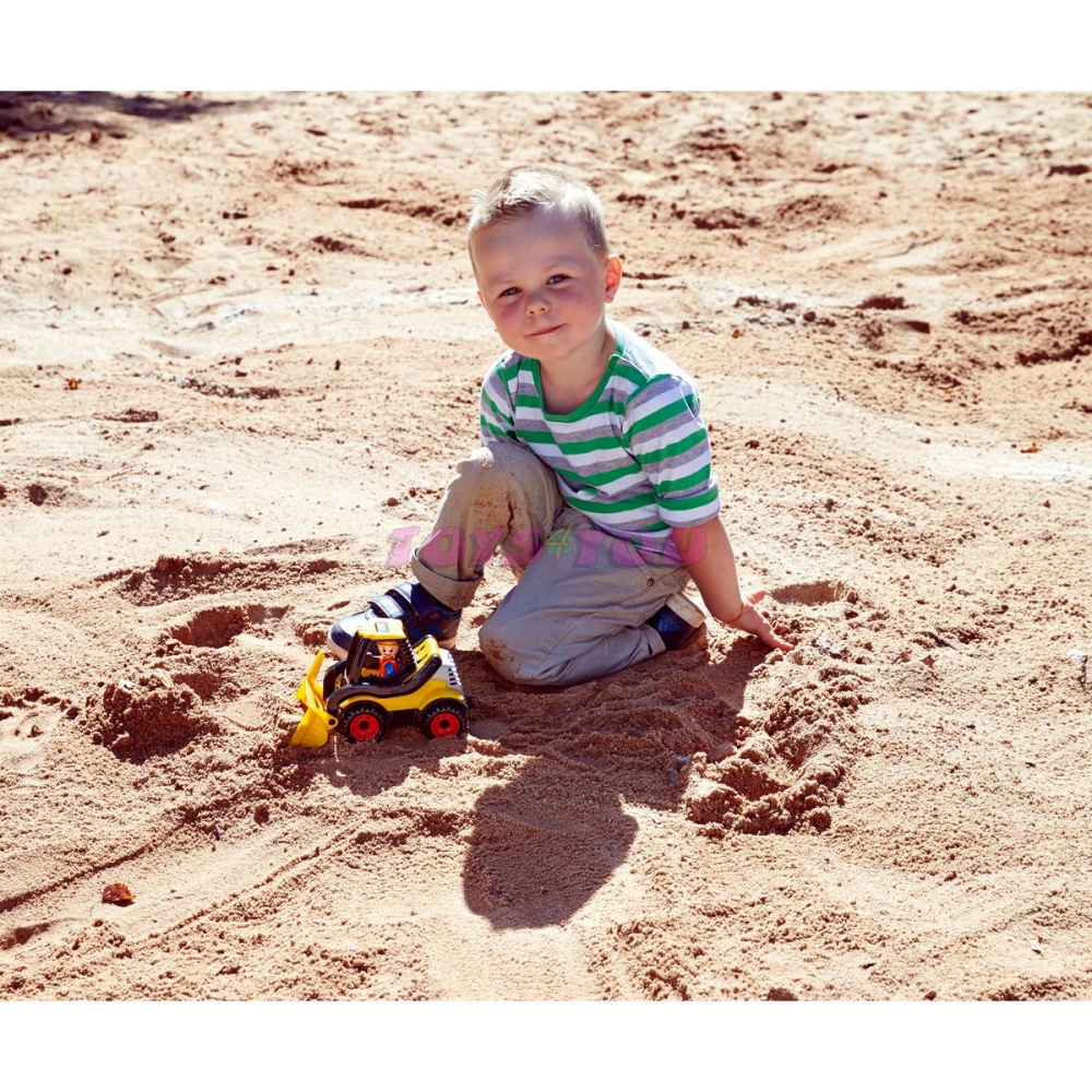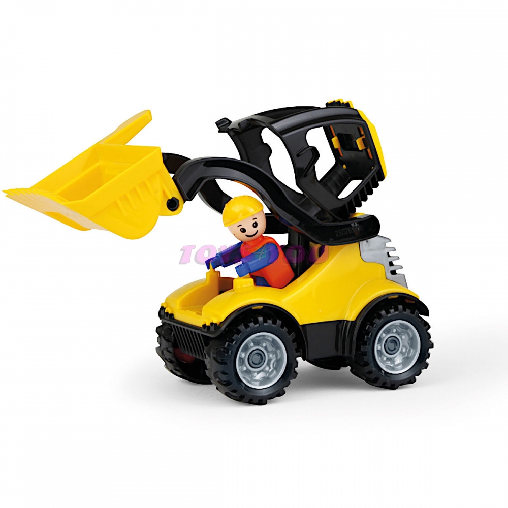 ruckies nakladač z kvalitního plastu a velmi pevnou stavbou. Plně mechanicky funkční. Obsahuje odklopitelnou kabinu s aktivním panáčkem. Velikost : 26x10x14 cm. Věk: 2+
