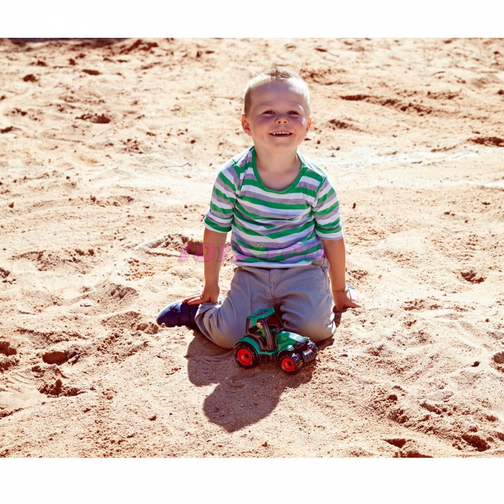 Truckies traktor z kvalitního plastu a velmi pevnou stavbou. Plně mechanicky funkční. Obsahuje odklopitelnou kabinu s aktivním panáčkem. Rozměr: 26x10x14 cm. Věk: 3+