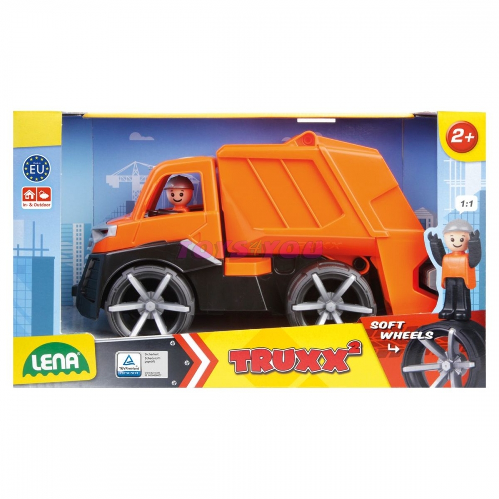 TRUXX2, popelář, okrasný kartón. Kód: 4514. Truxx 2 auto popelář z kvalitního plastu a velmi pevnou stavbou. Plně mechanicky funkční. Obsahuje pojistku proti nežádoucímu vyklopení, odklopitelnou kabinu s aktivním panáčkem. Pogumovaná kola s tichým chodem. Výroba: ČR Rozměr: 37x16x22 cm. Věk :2+