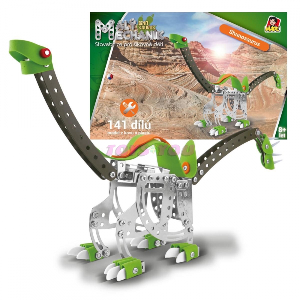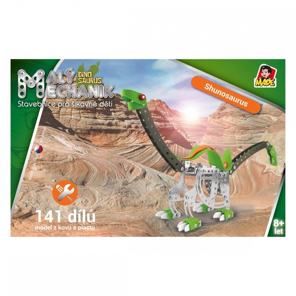 Malý mechanik - apatosaurus. Dětská stavebnice Malý mechanik obsahuje kovové díly a plastové doplňky, spojuje se pomocí šroubků a matiček. 141 dílků. Český box v grafickém designu řady Malý mechanik.Rozměr produktu: 44 x 9,5 x 17 cmDoporučený věk: 8
