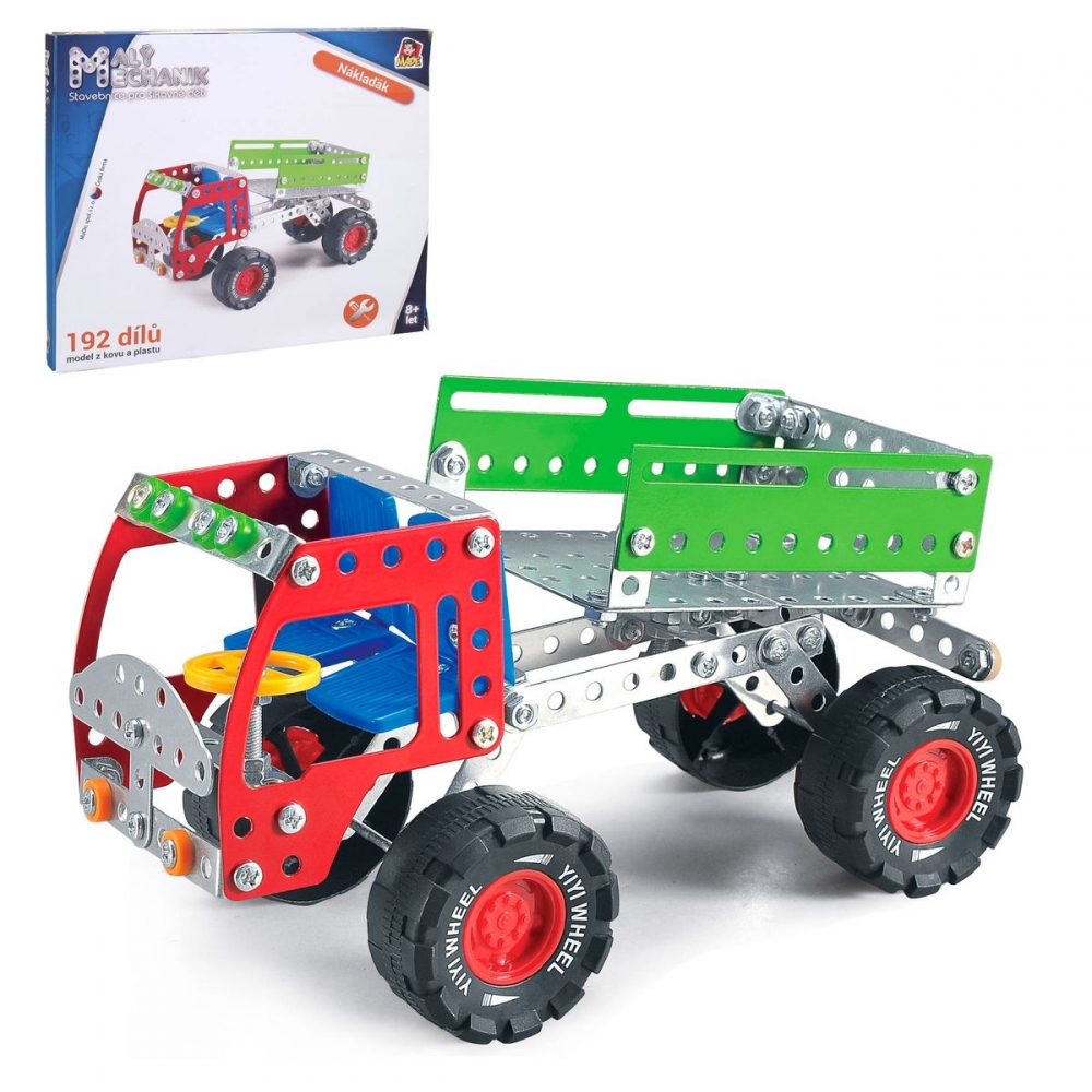 Malý mechanik nákladní auto, 192 dílků. Stavebnice Malý mechanik je skvělým vstupem do světa techniky. Rozvijí dětskou motoriku, kreativitu, manuální zručnost a zároveň představivost. Učí děti trpělivosti a samostatnosti při řešení problému. Odměnou bude vlastnoručně sestavené krásné nákladní auto, který udělá radost nejednomu dítěti. Dětská stavebnice Malý mechanik obsahuje kovové díly a plastové doplňky, spojuje se pomocí šroubků a matiček. Balení obsahuje 192 dílků. Součástí každé sady je šroubovák a klíč pro povolování a utahování. Český box v grafickém designu řady Malý mechanik. Malý mechanik nákladní auto, 192 ks Hračka je určena pro děti 8+. Rozměr boxu je 34 x 5 x 24 cm. Materiál hračky je plast/kov. Určení Kluky Věk 8+