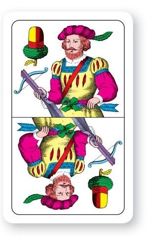 Mariáš dvouhlavý krajka 1514 - hrací karty - …herní sada zobrazuje na jednotlivých figurách legendu o Vilému Tellovi, obraz karet je s drobnými změnami stejný již 150 let. Obrazy jednotlivých es zobrazují roční období od jara do zimy. Hra zachovává oblíbený revers ve tvaru krajky. No.1514, revers krajka, krabička plast počet 32 listů formát karet 61/99 mm papír Casino Classic 310 g/m2 baleno v plastové krabičce EAN 859 55917 0006-1